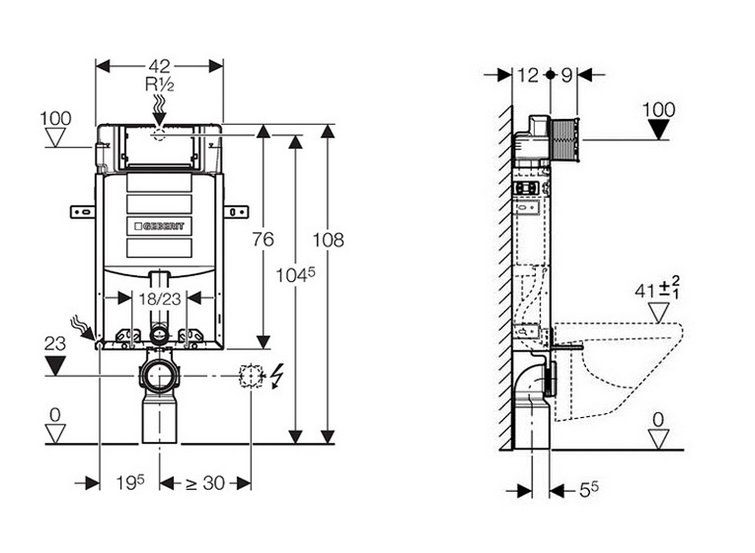 Předstěnový splachovací systém Geberit KOMBIFIX ECO 110.302.00.5 pro zazdění nebo předezdění. Kombifix je určený pro instalaci s mokrými procesy do masivních zděných konstrukcí nebo pro předstěnovou instalaci (před zděnou nebo betonovou stěnu) s předezděním.