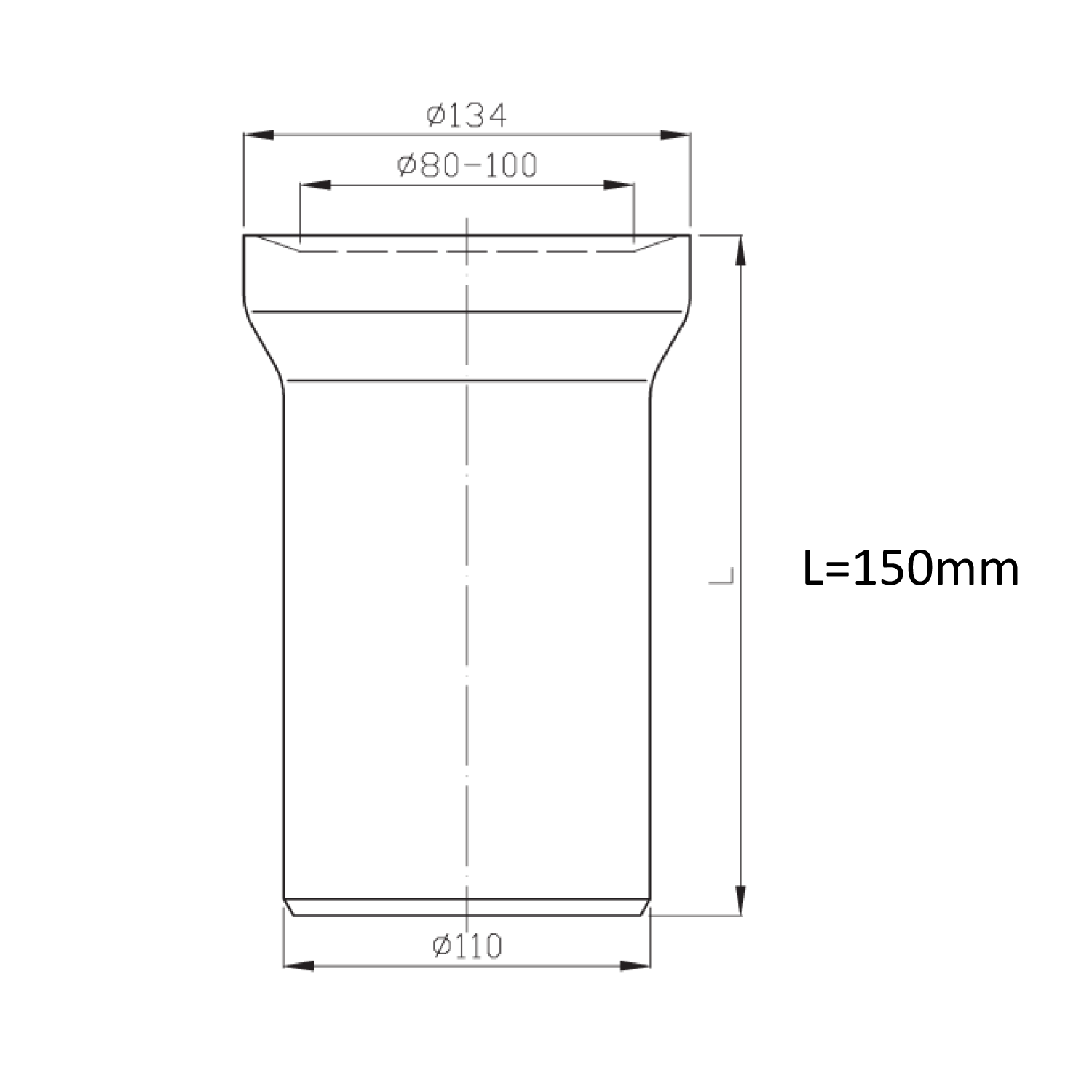 Přímý kus dopojení k WC, délka 250mm, 110mm