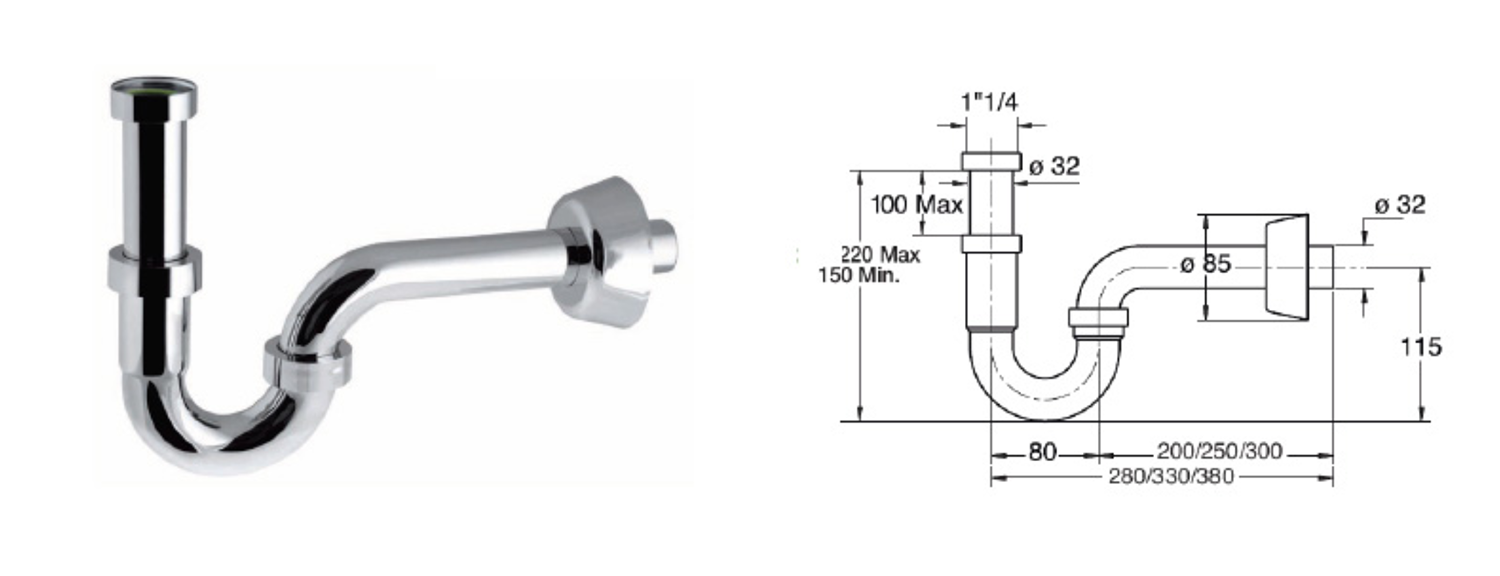 Prodloužená trubka sifonu s přírubou, 32/250mm, chrom 0632CC25B7