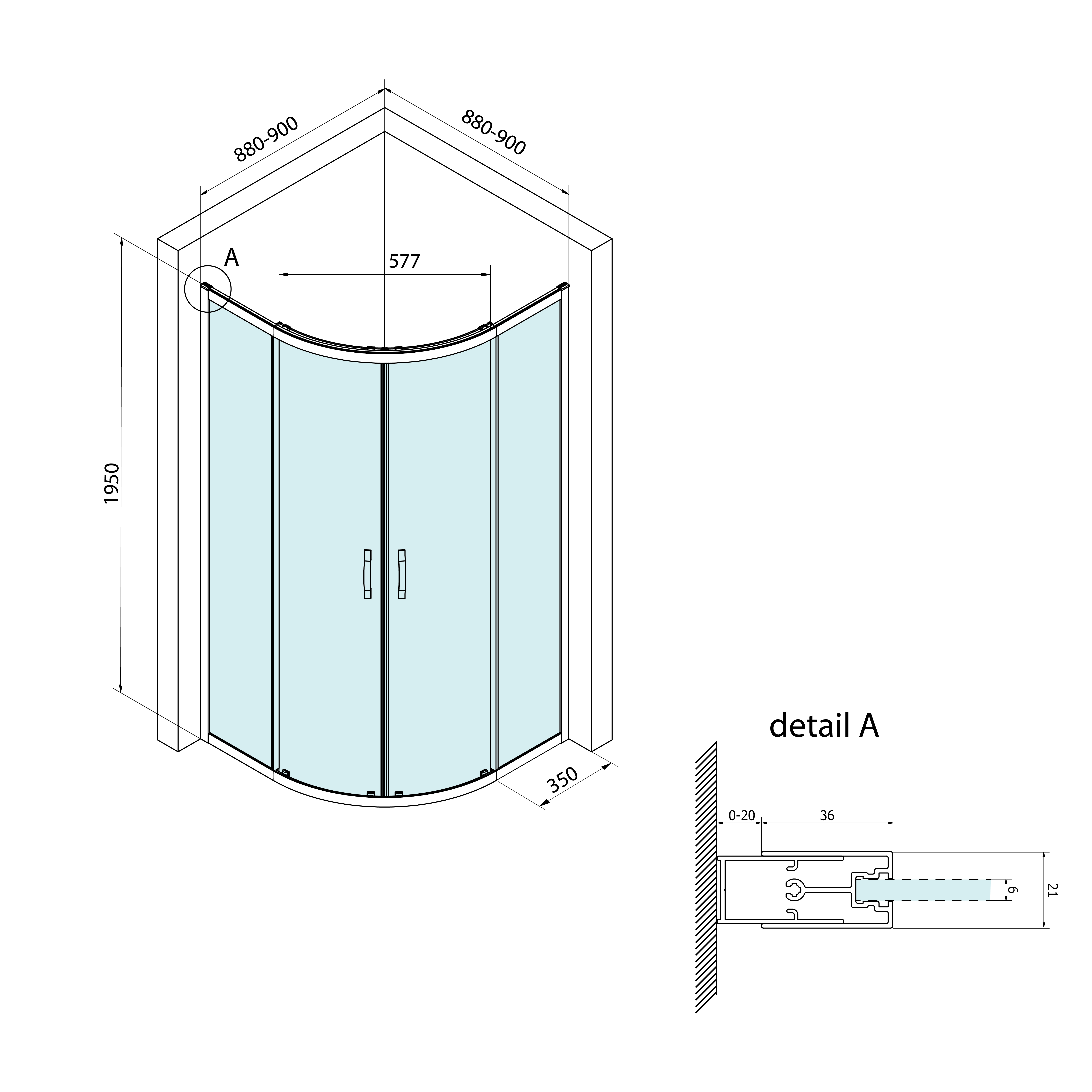 ELSE sprchová vanička z litého mramoru, čtvrtkruh 90x90cm, R550, bílá 800.311.4