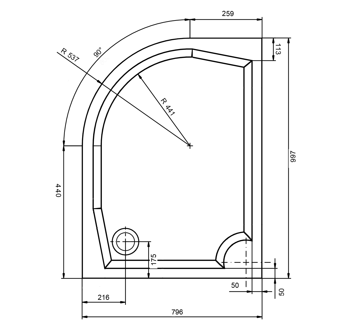 RENA R sprchová vanička z litého mramoru,čtvrtkruh 100x80cm, R550, pravá, bílá 76511