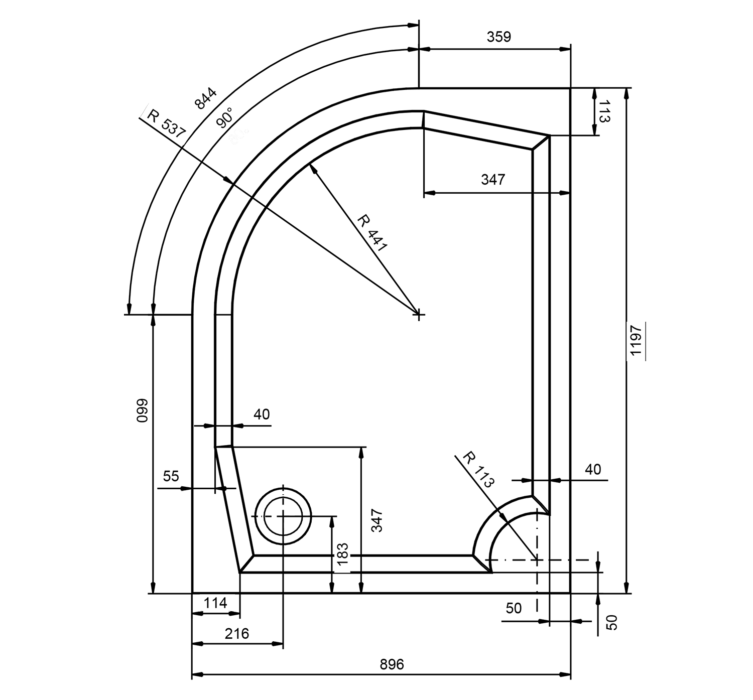 FLEXIA vanička z litého mramoru čtvrtkruh, s možností úpravy rozměru, 120x90cm, R550, levá 91371