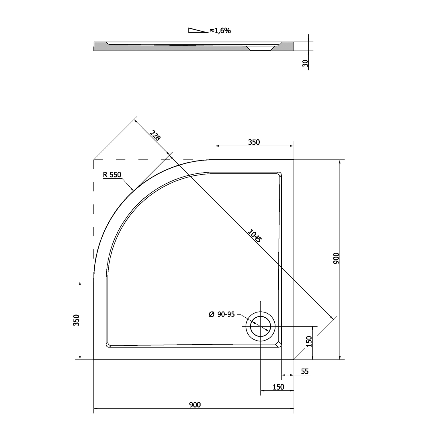 LUSSA sprchová vanička z litého mramoru se záklopem, čtvrtkruh 90x90cm, R550 71602
