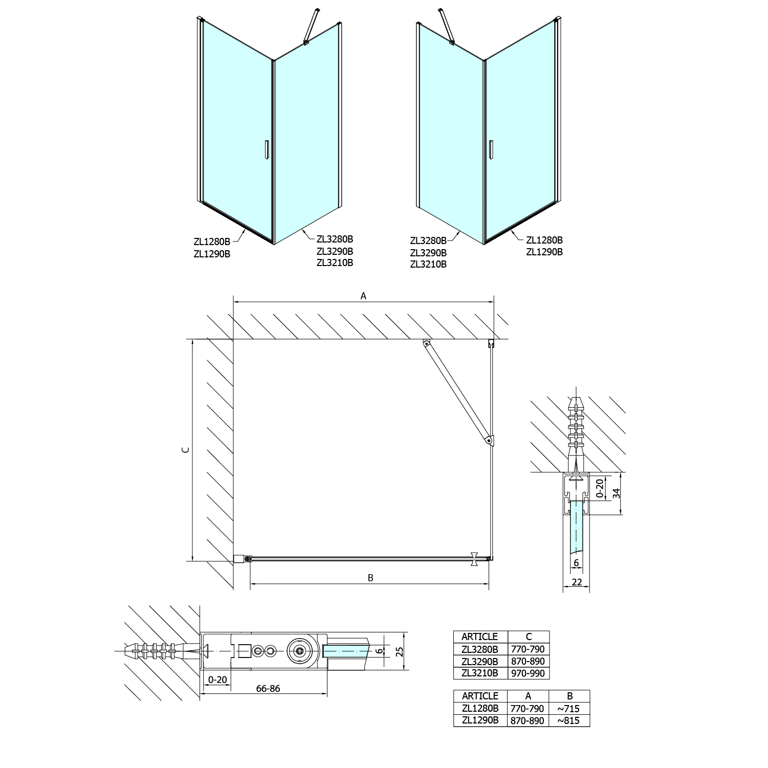 ZOOM BLACK sprchové dveře 900mm, čiré sklo ZL1290B