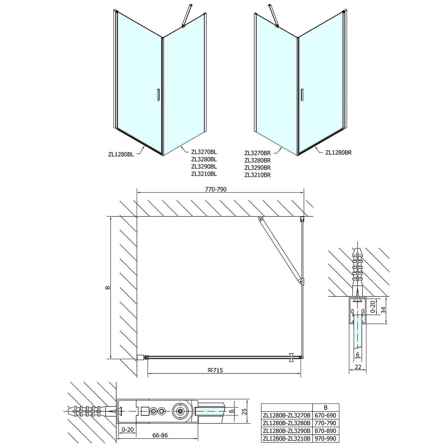 ZOOM BLACK rozšiřovací profil pro nástěnný otočný profil, 20mm ZL920B