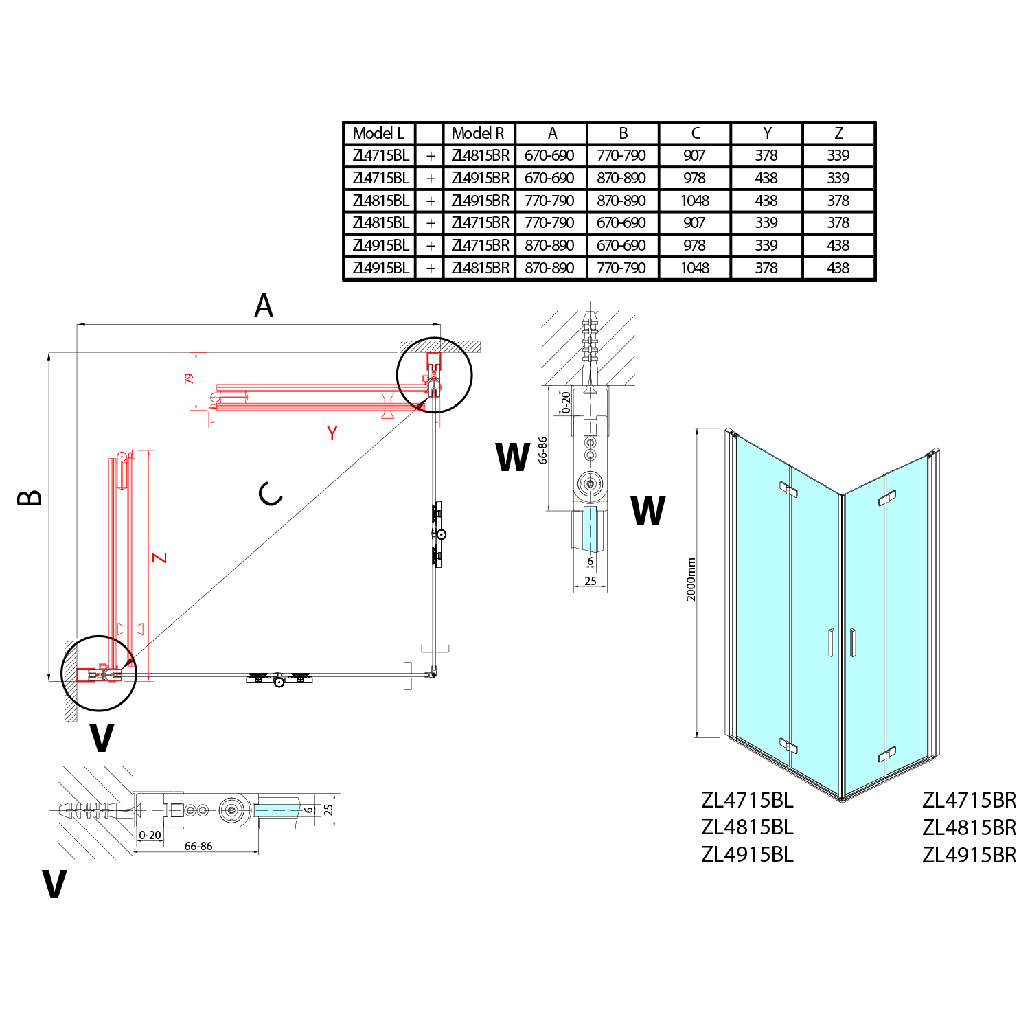 • Pouze dveře. Pro instalaci do niky je zapotřebí přikoupit ZL4989B ZOOM BLACK magnetický profil.