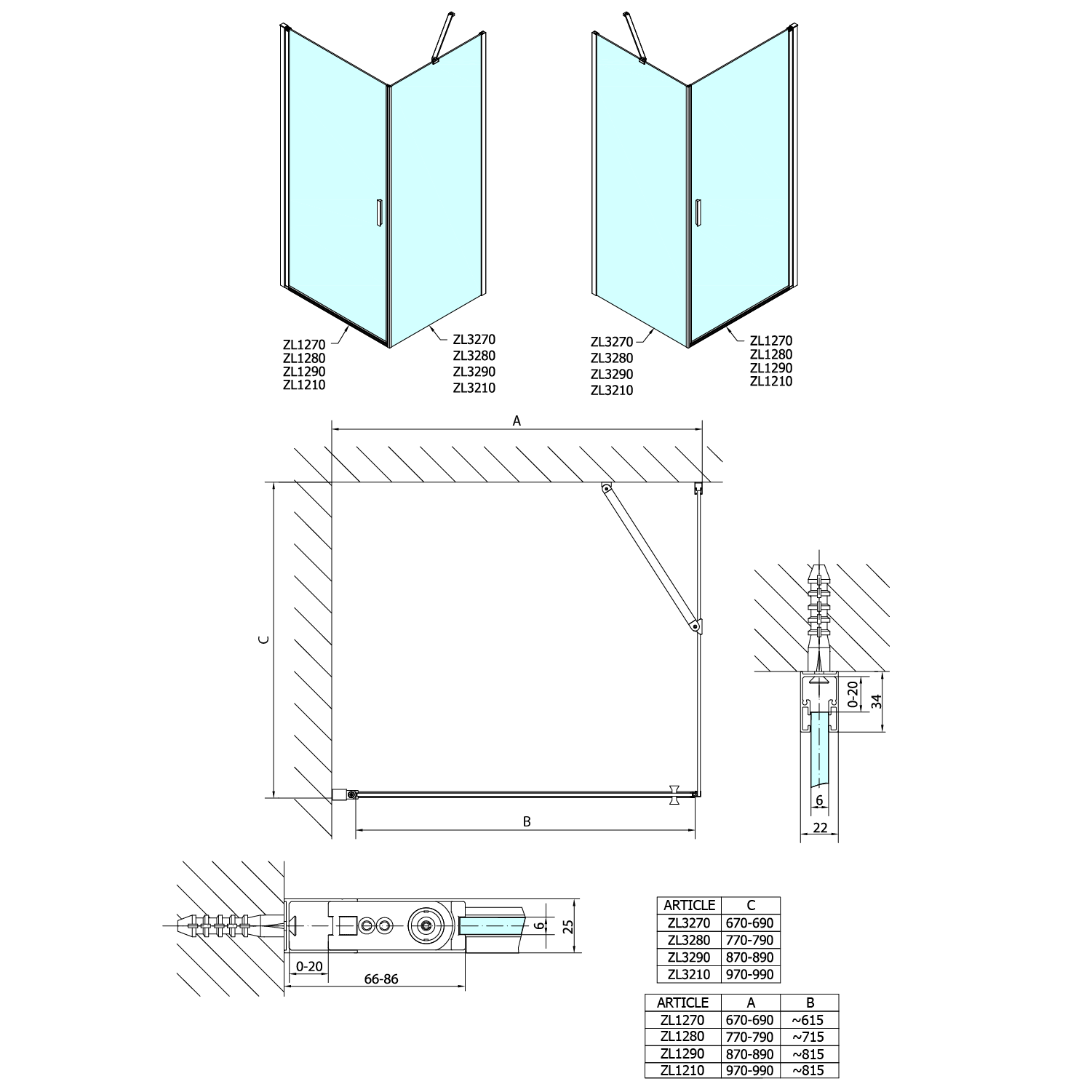 ZOOM sprchové dveře 900mm, čiré sklo ZL1290