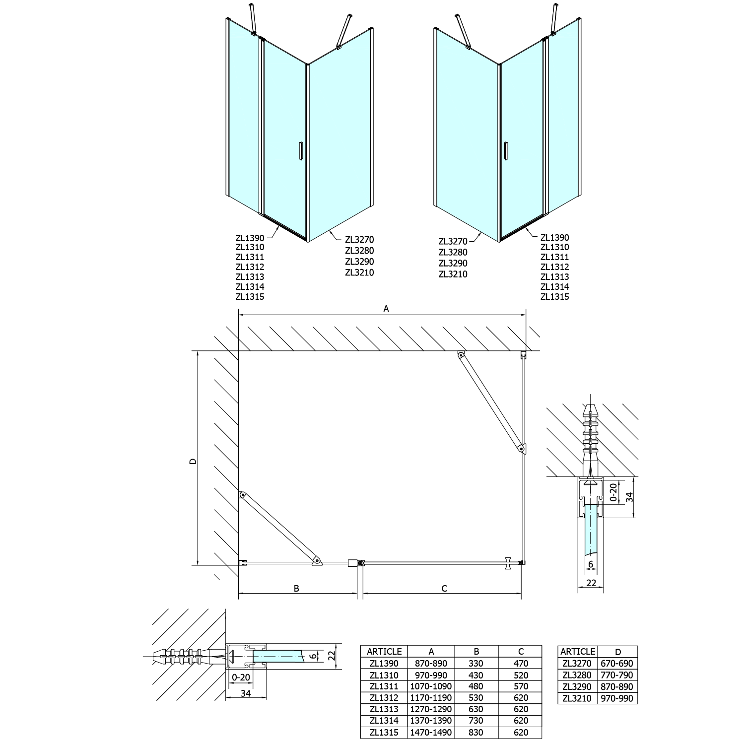 ZOOM sprchové dveře 1400mm, čiré sklo ZL1314