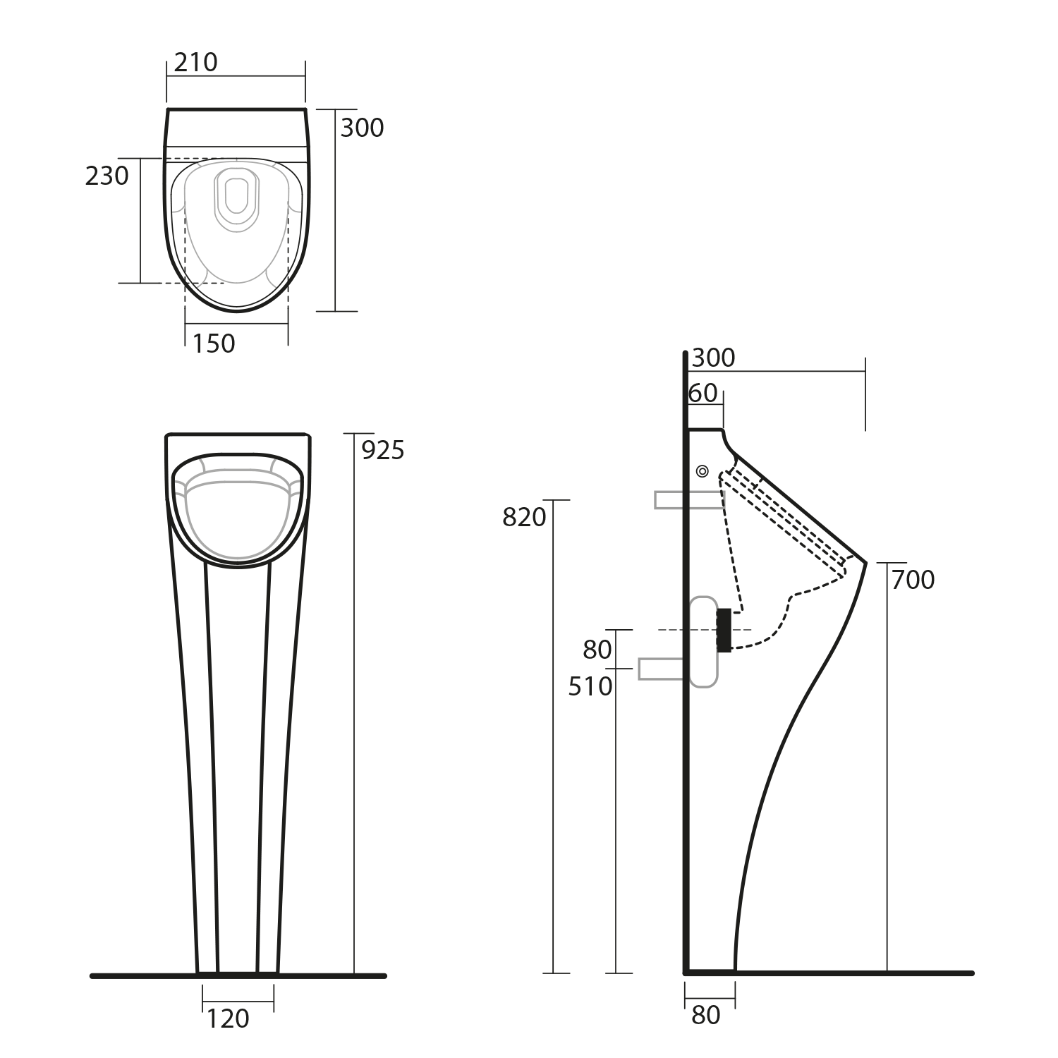 • Při instalaci s automatickým splachovačem PS002 je nutné instalovat i napájecí zdroj (PS05T nebo PS10T).