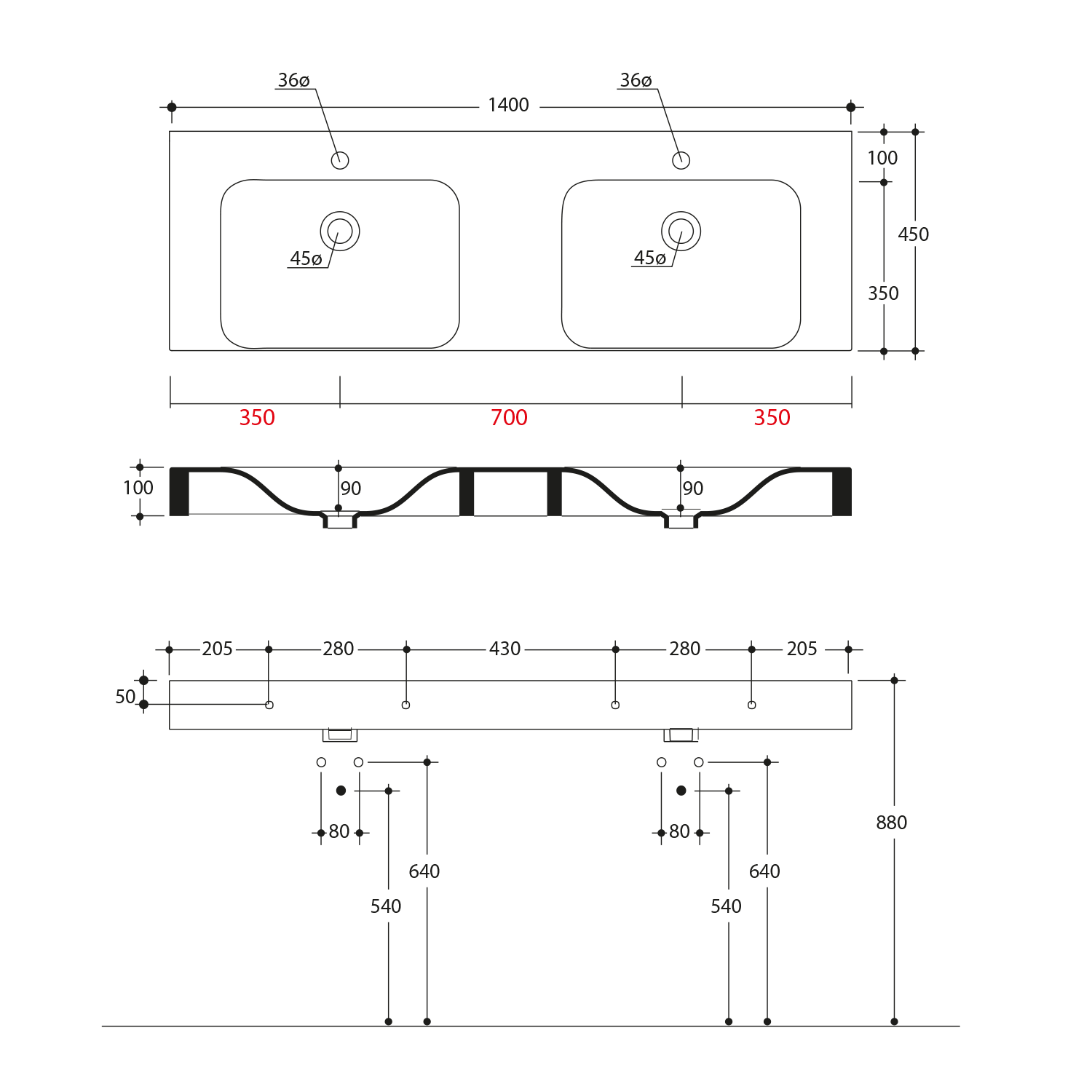 WALDORF keramické dvojumyvadlo 150x55cm, bílá 4143K1