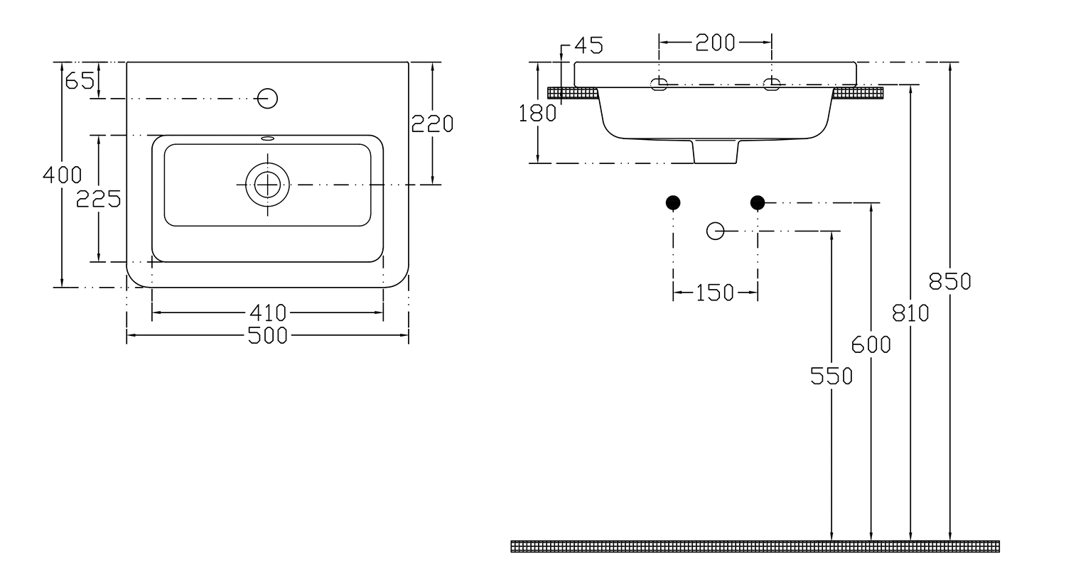 ELLA umyvadlová skříňka 46,5x65x38,5cm, 1x dvířka, levá, bílá EL055-3030