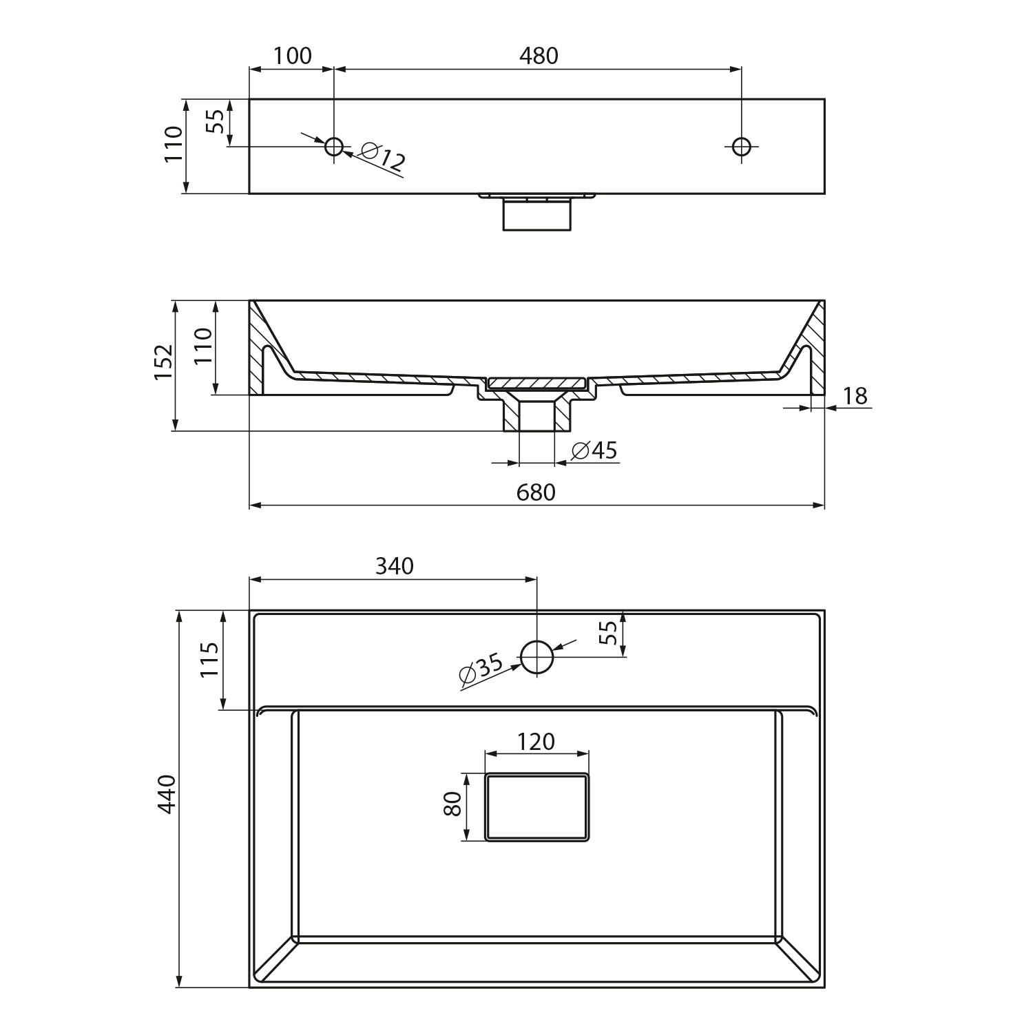 ORINOKO umyvadlo, litý mramor, 70x42cm, bílá OR070