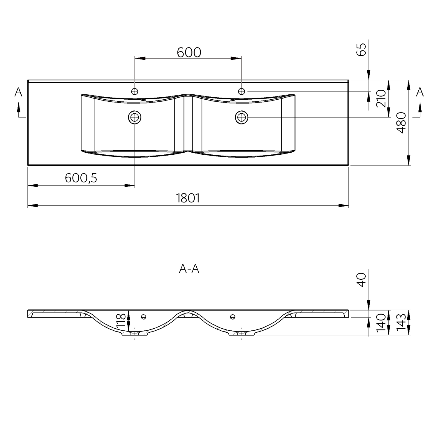 WAVE dvojumyvadlová skříňka 179,7x50x47,8cm, bílá WA180-3030