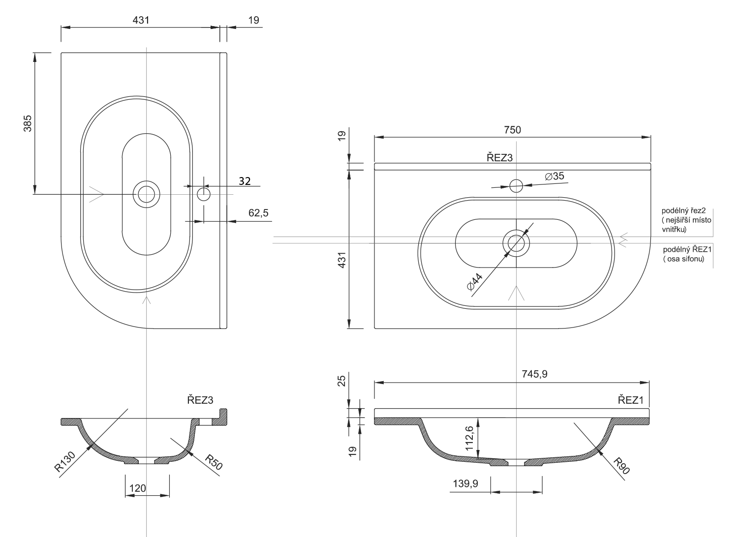 ARANA umyvadlo rohové, litý mramor, 56x35cm, levé, bílá AN055