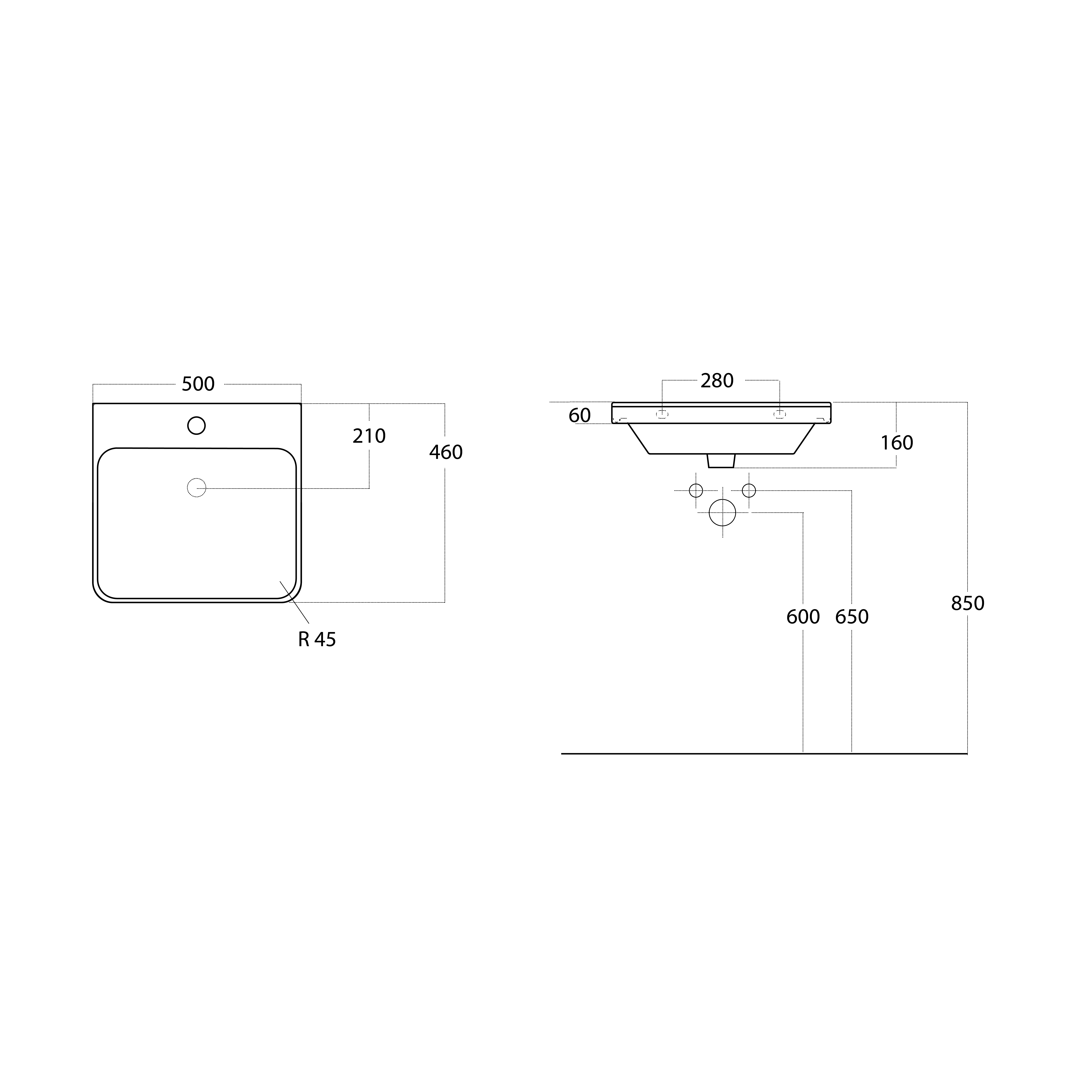 THEIA umyvadlová skříňka 46,4x70x44,2cm, 2xzásuvka, bílá TH050-3030