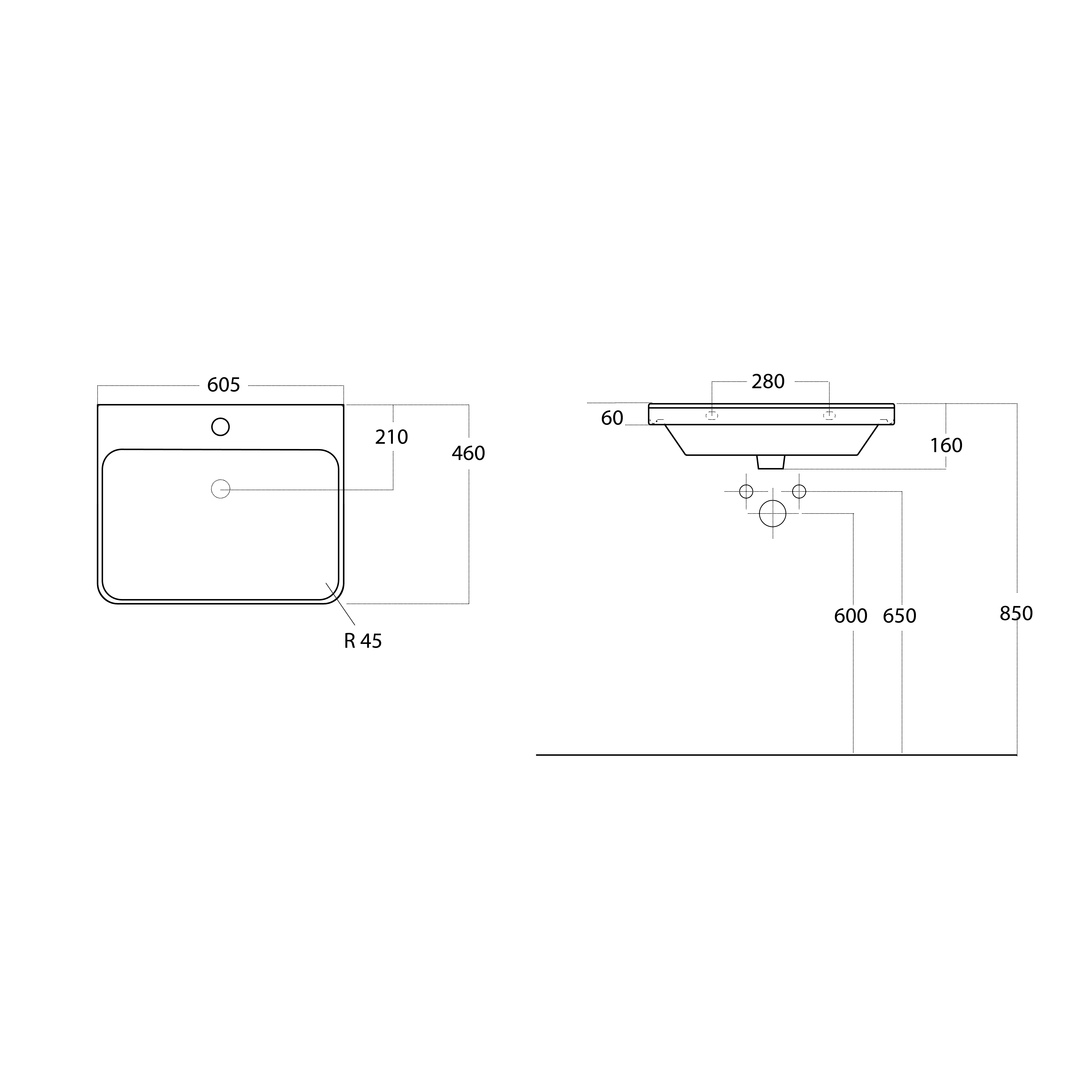 THEIA umyvadlová skříňka 56,4x70x44,2cm, 2xzásuvka, bílá TH060-3030