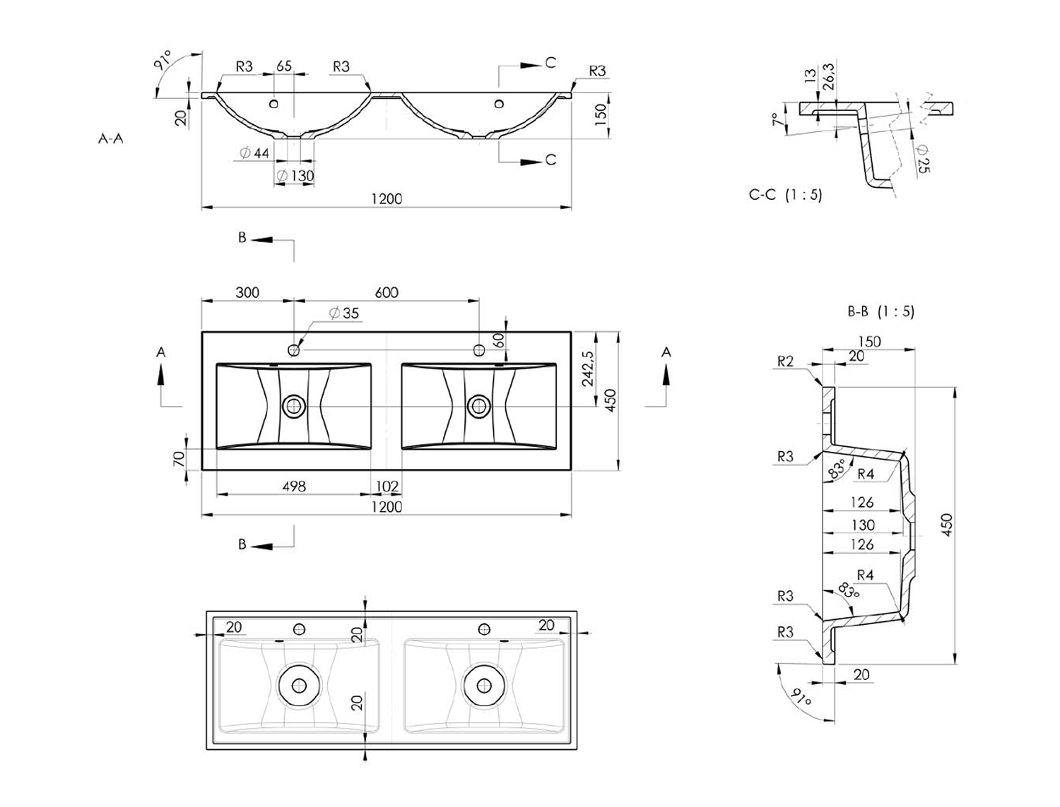 Podpěrná konzole 440x150x20mm, lakovaná ocel, černá mat, 1 ks VG4415