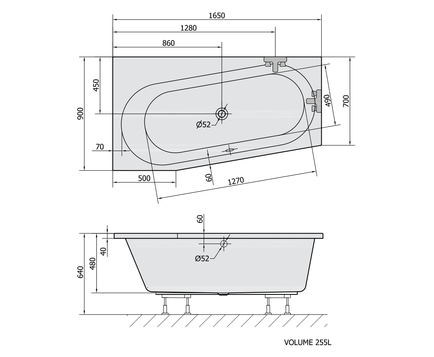 ASTRA WL SLIM asymetrická vana 165x90x48cm, bílá 30611S