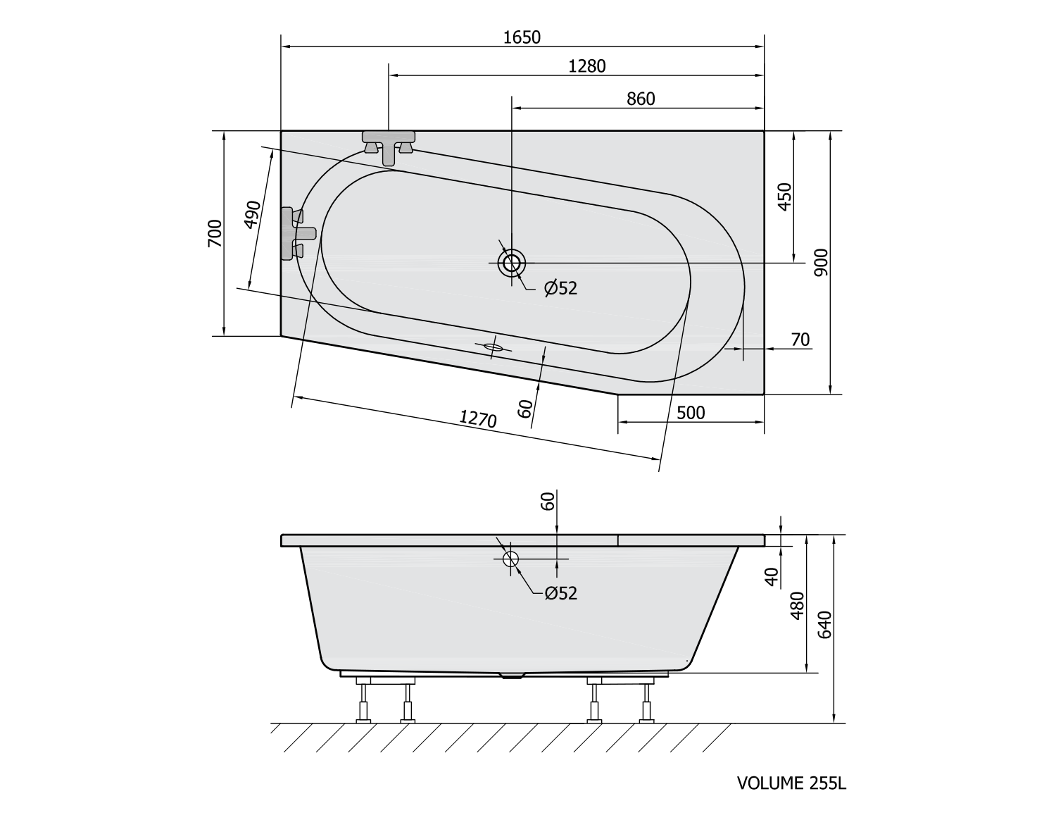 ASTRA WR SLIM asymetrická vana 165x90x48cm, bílá 31611S