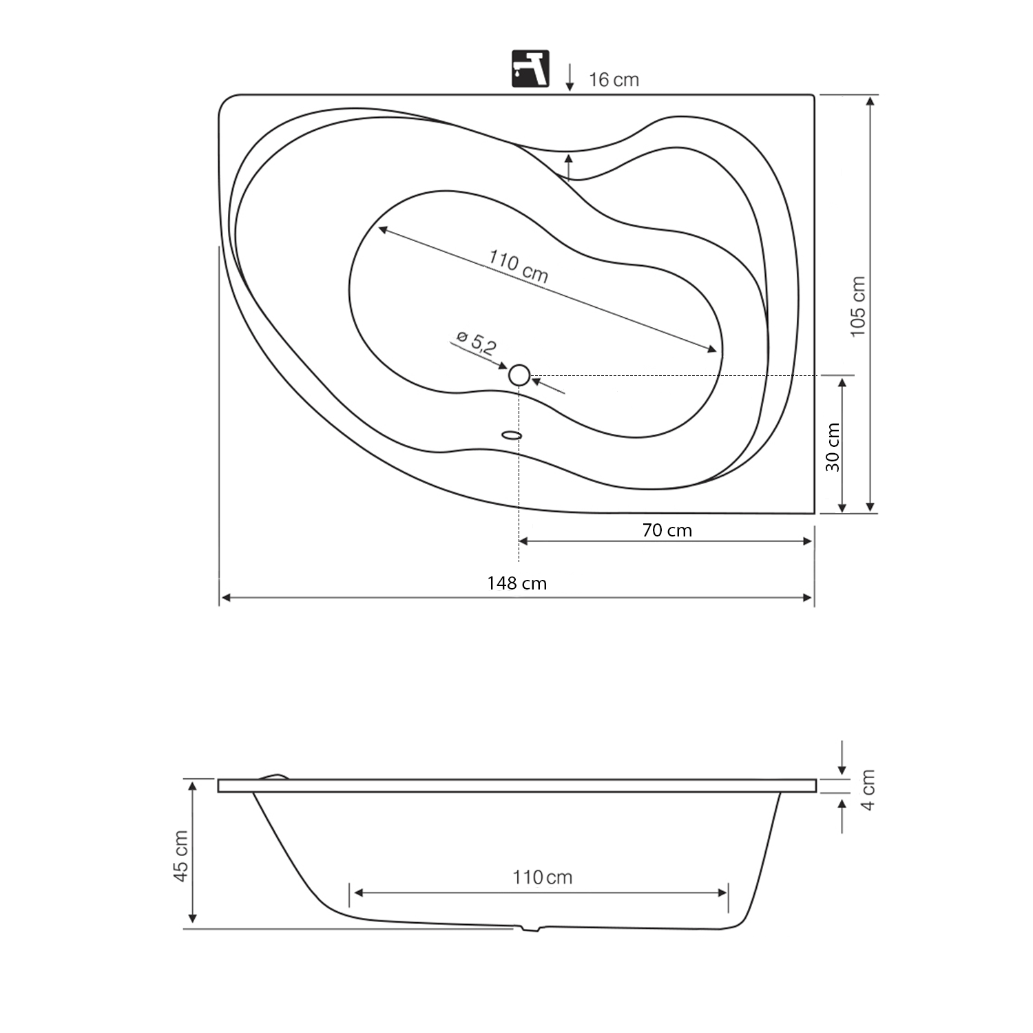 CIDLINA 160 vana 160x105x45cm, pravá, bílá G3614