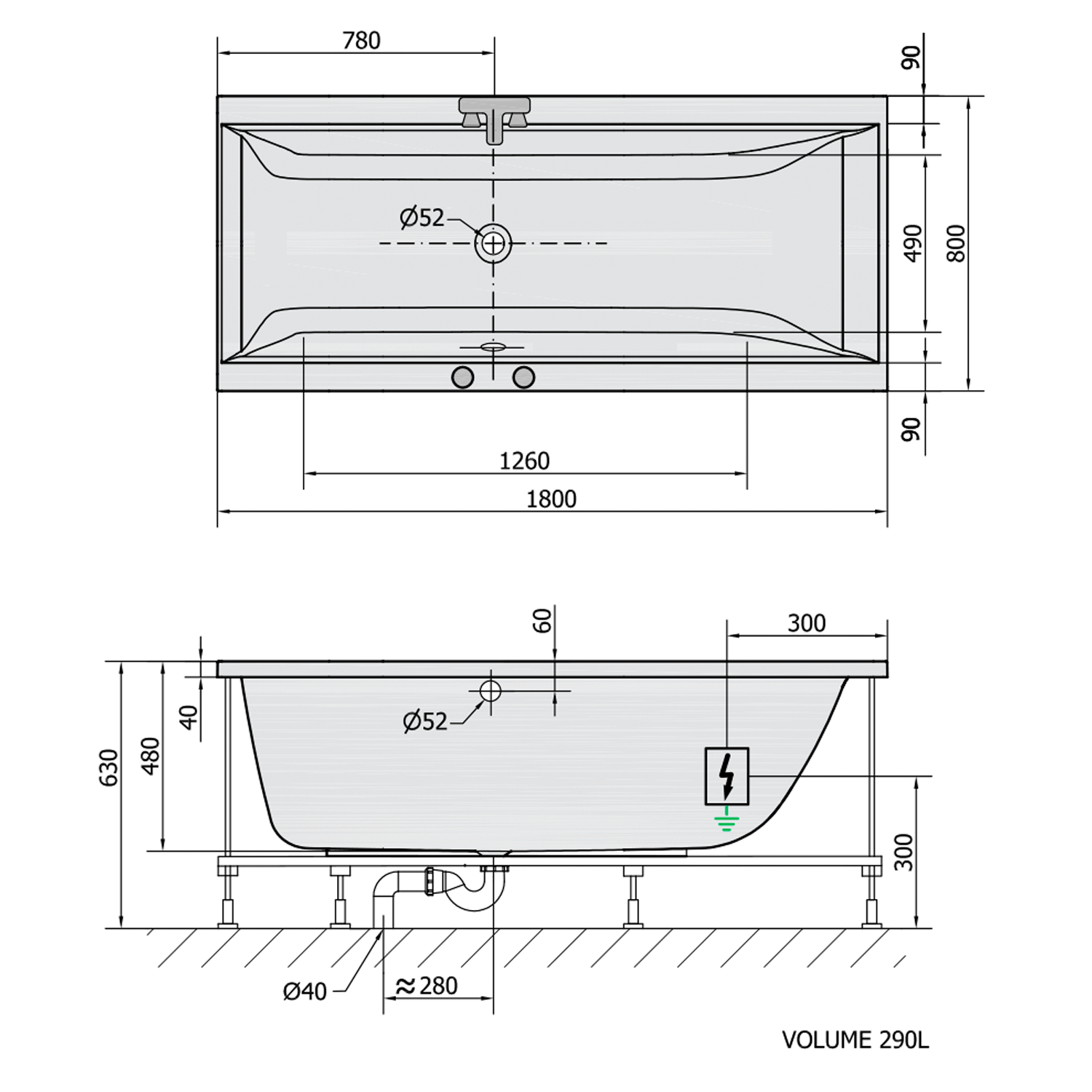 CLEO hydromasážní vana, 180x90x48cm, Highline Hydro-Air, chrom 13111.6010
