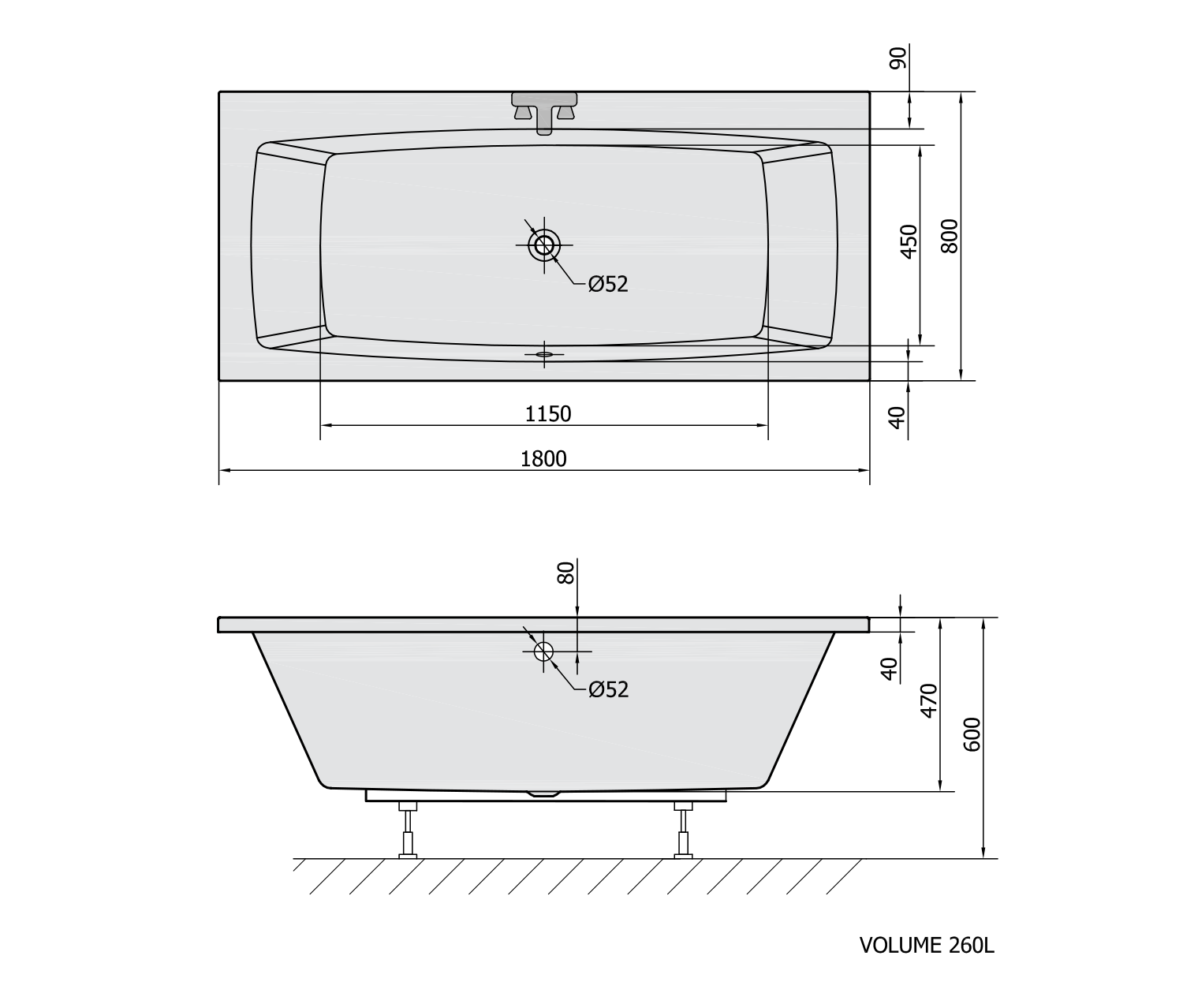 CLEO obdélníková vana 180x90x48cm, bílá 13111