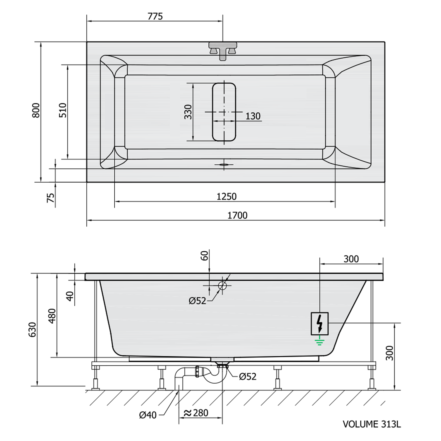 UNIVERSAL sedák na vanu, 80x25 cm, černá 73259
