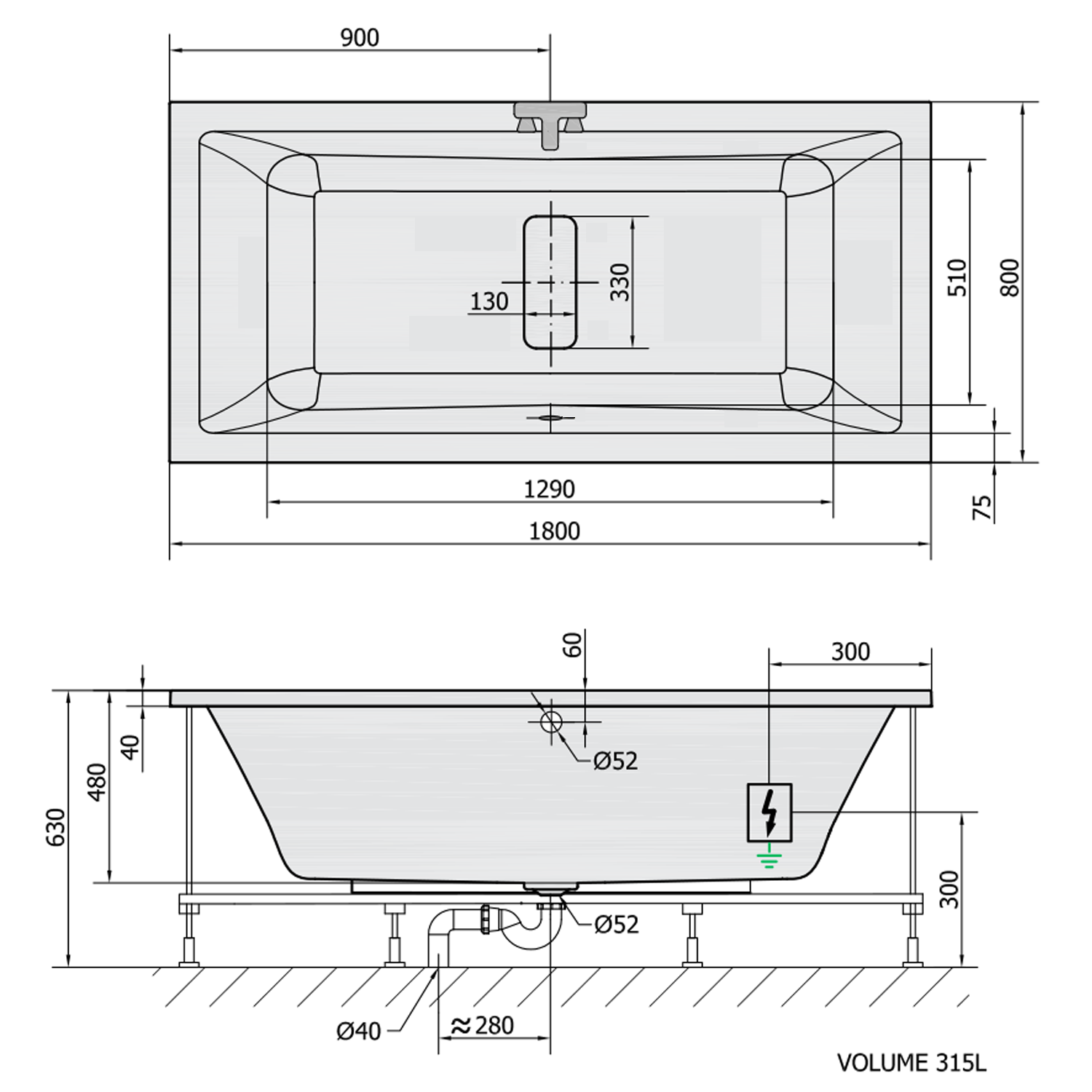 CLEO hydromasážní vana, 180x90x48cm, Active Hydro, chrom 13111.1010