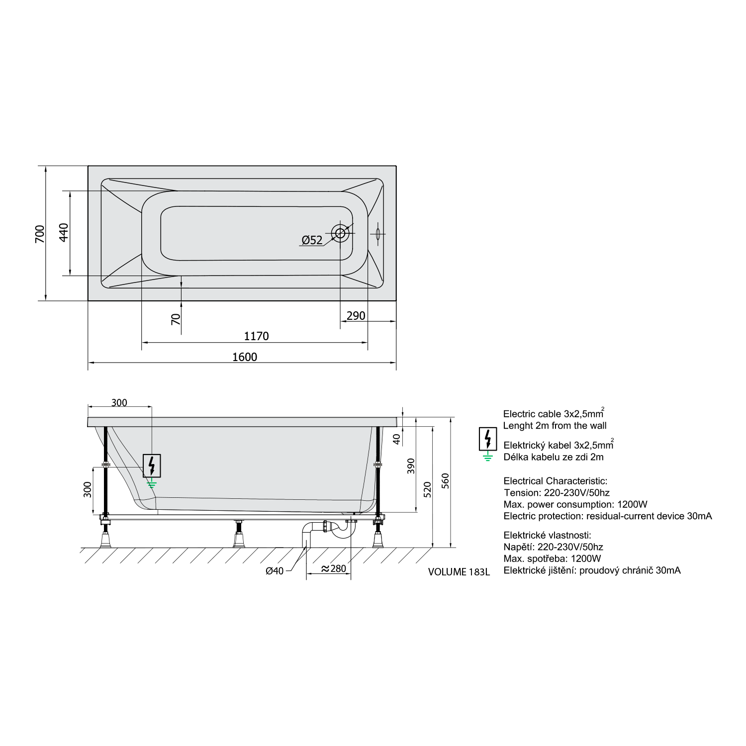 NOEMI hydromasážní vana, 160x80x39cm, Highline Hydro-Air, chrom 71722.6010