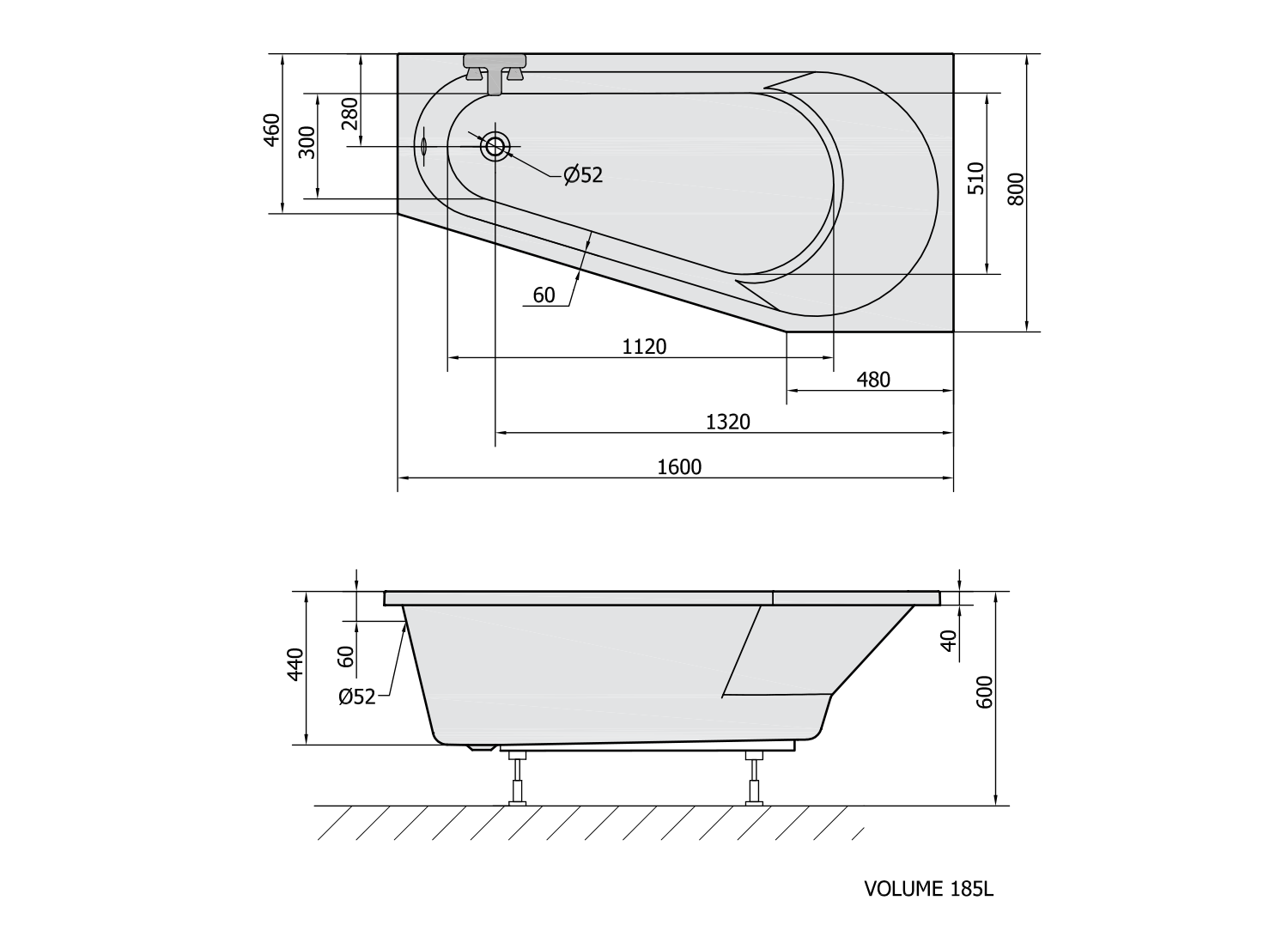 VERSYS R asymetrická vana 160x84x70x47cm, bílá 15611
