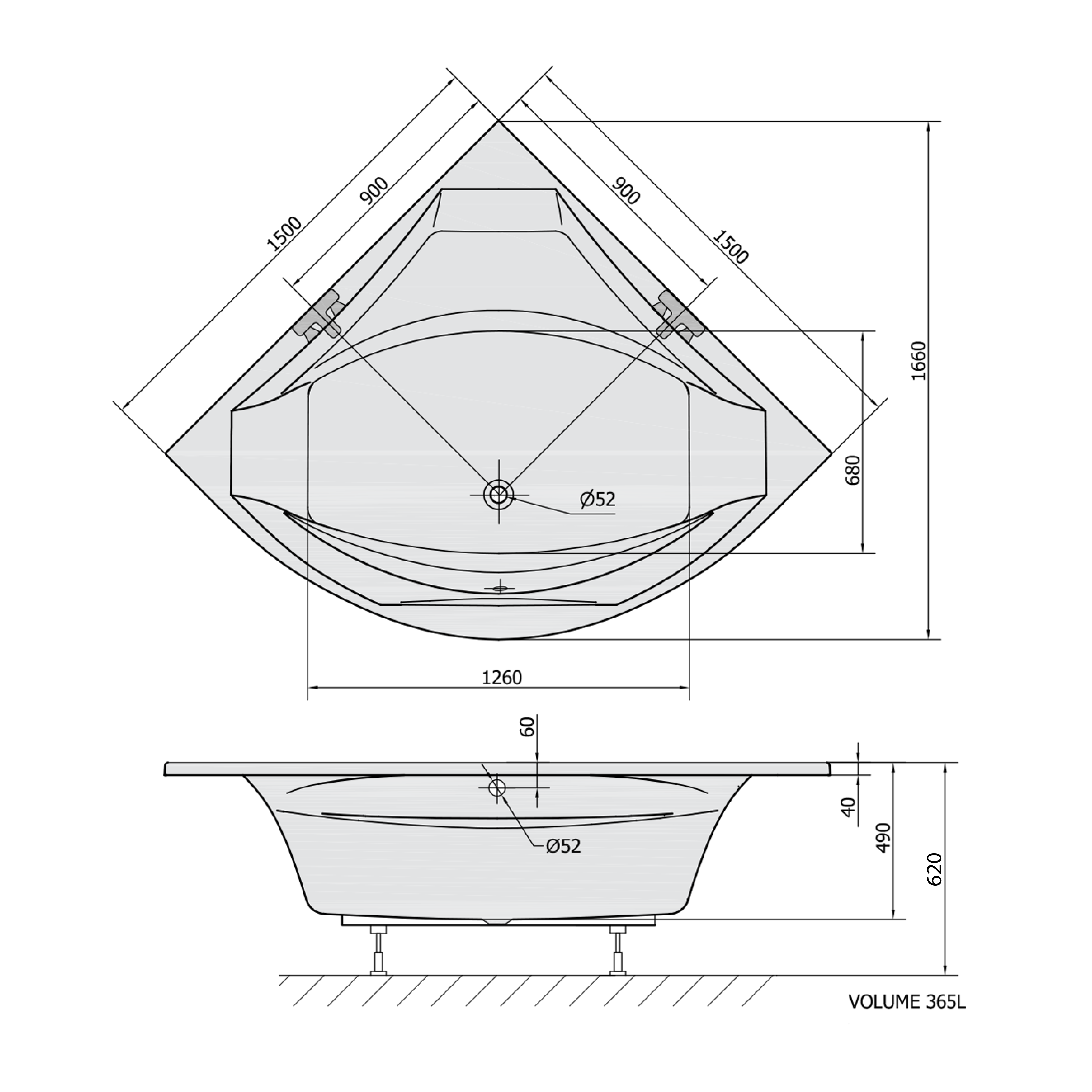 Nosná konstrukce pro rohovou vanu 150x150cm FR150150