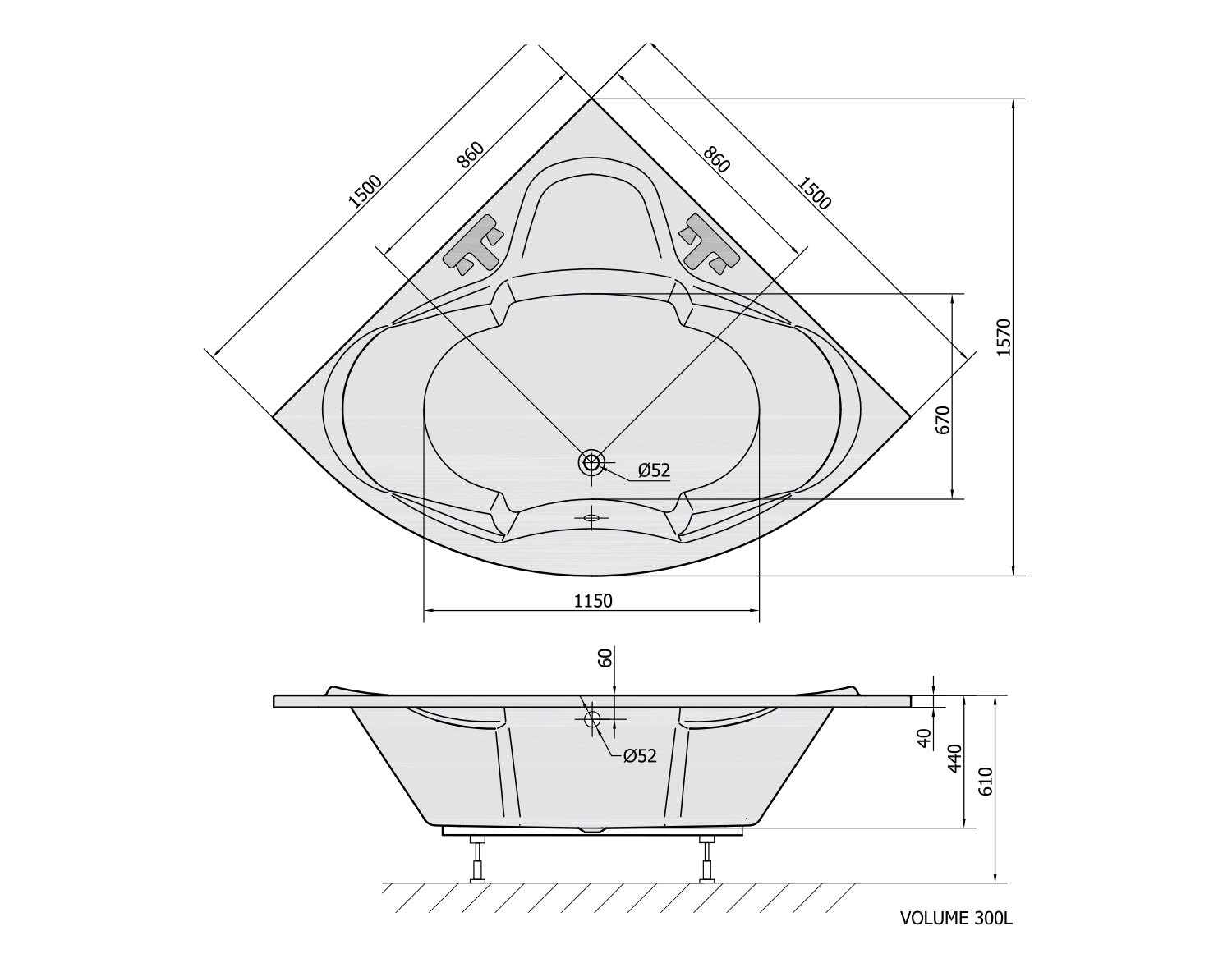 Nosná konstrukce pro rohovou vanu 150x150cm FR151151