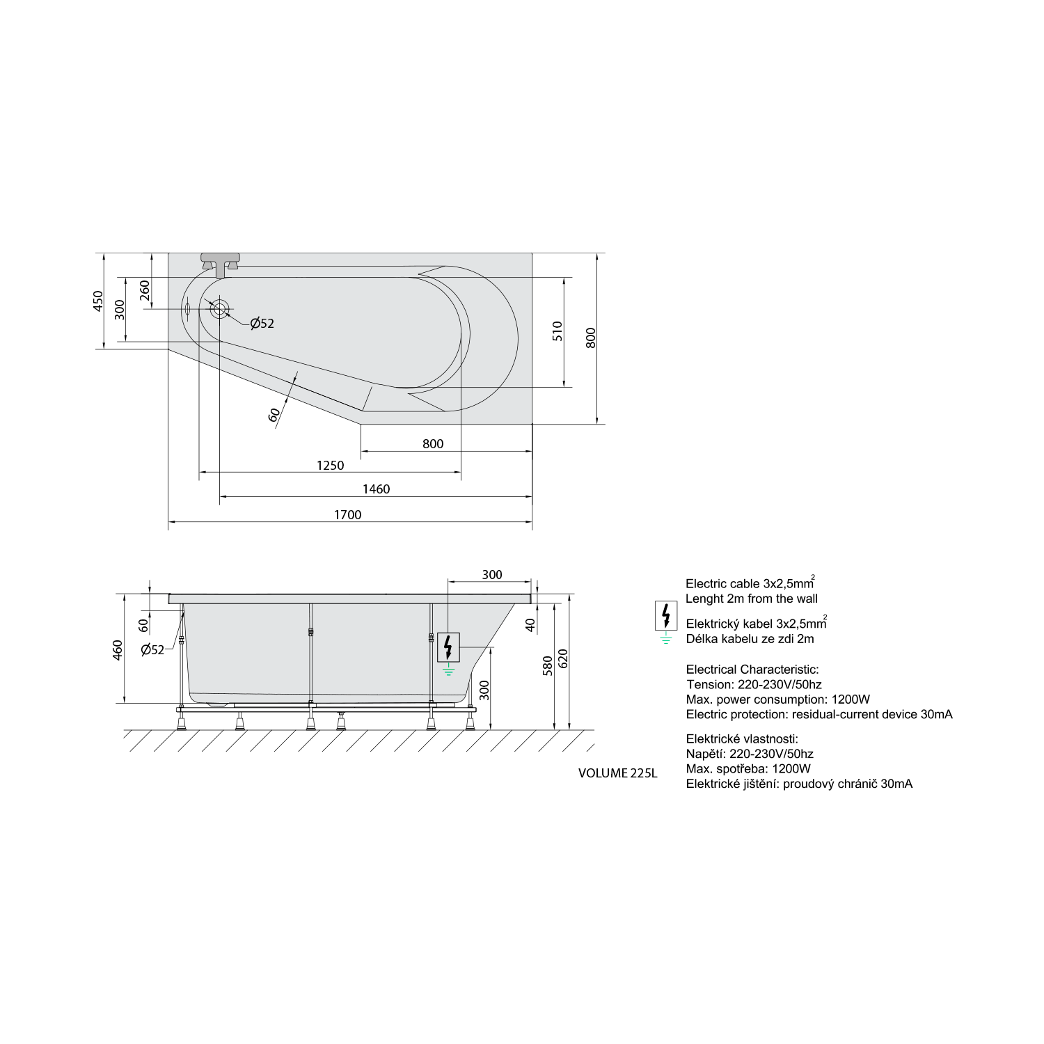 EVIA R hydromasážní vana, 170x100x47cm, Attraction Hydro-Air, chrom 22611.4010