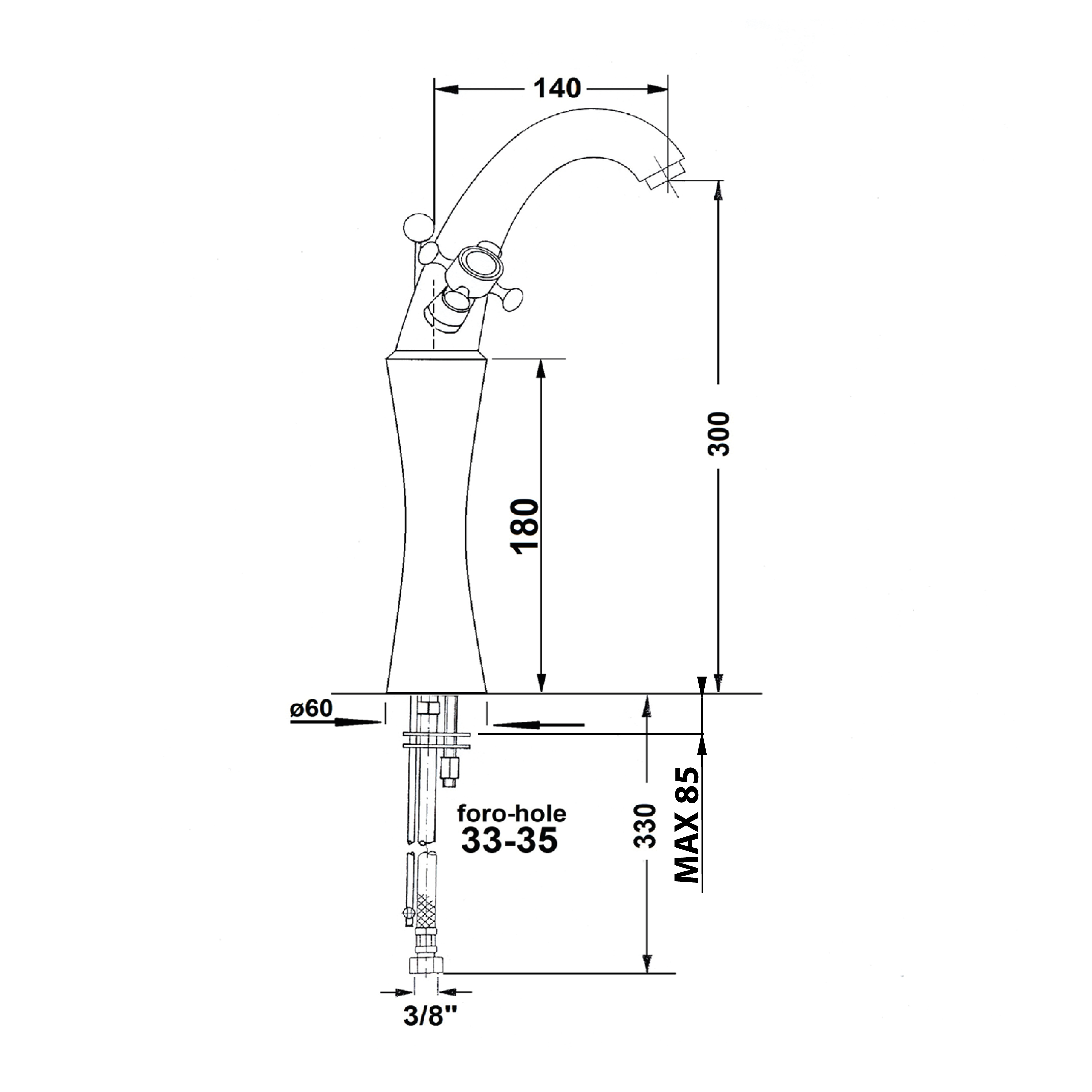 ANTEA stojánková umyvadlová baterie vysoká s výpustí, výška 245mm, chrom/zlato 3172L