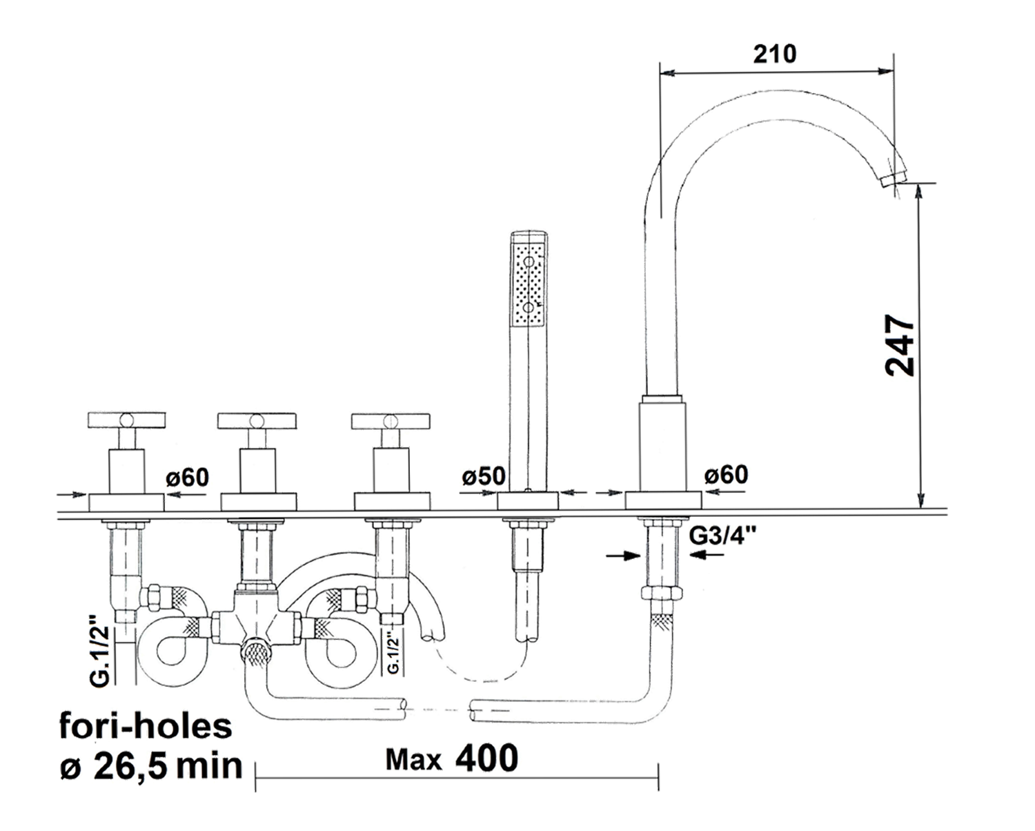 TRAX pětiprvková baterie na okraj vany, chrom 632