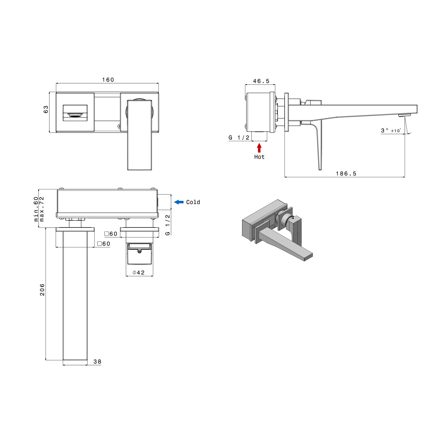 Umyvadlová výpust 5/4“, click-clack, hranatá zátka, 32-52mm, chrom 8540.360.5