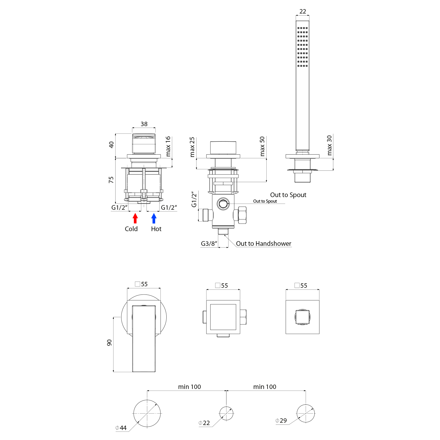 Výtoková hubice na okraj vany, šířka 120mm, chrom BD31451