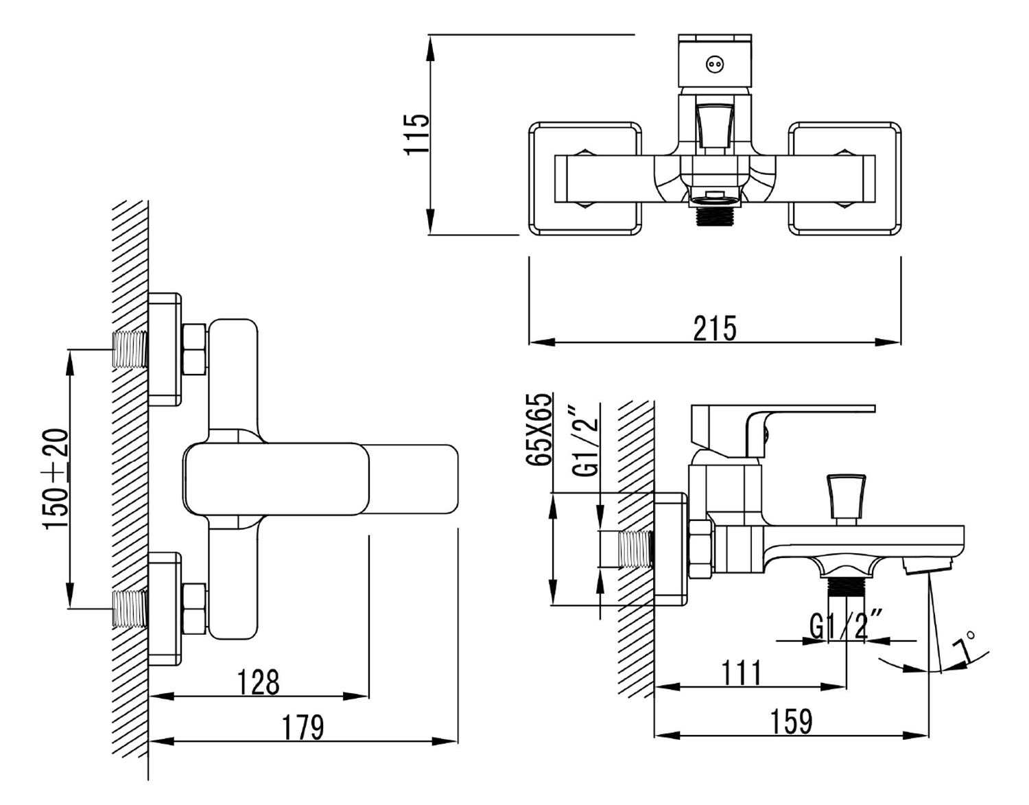 DAPHNE nástěnná vanová baterie, chrom DH101