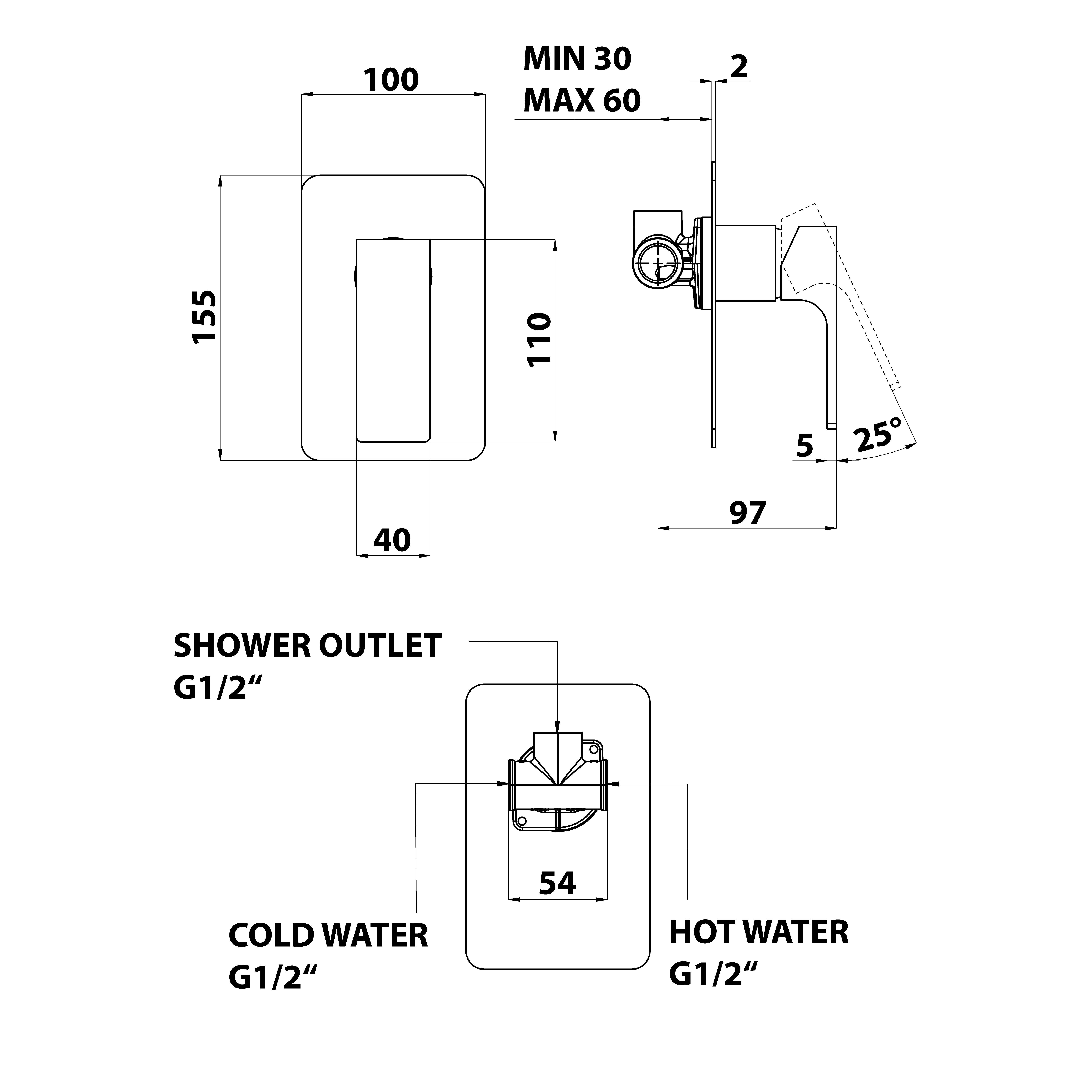GINKO podomítková sprchová baterie, 1 výstup, černá mat 1101-41B