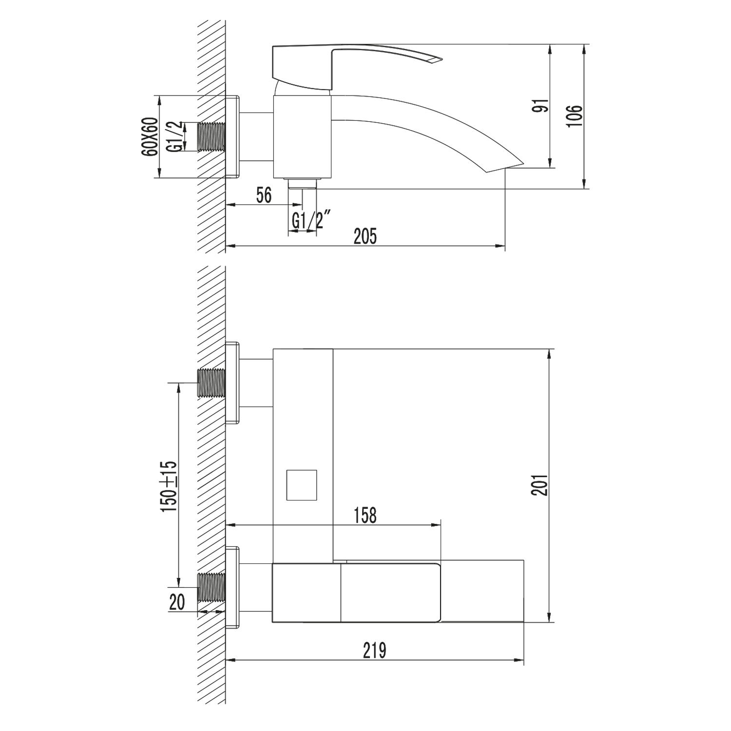 DIMY nástěnná vanová termostatická baterie, kaskáda, černá mat DM292BL