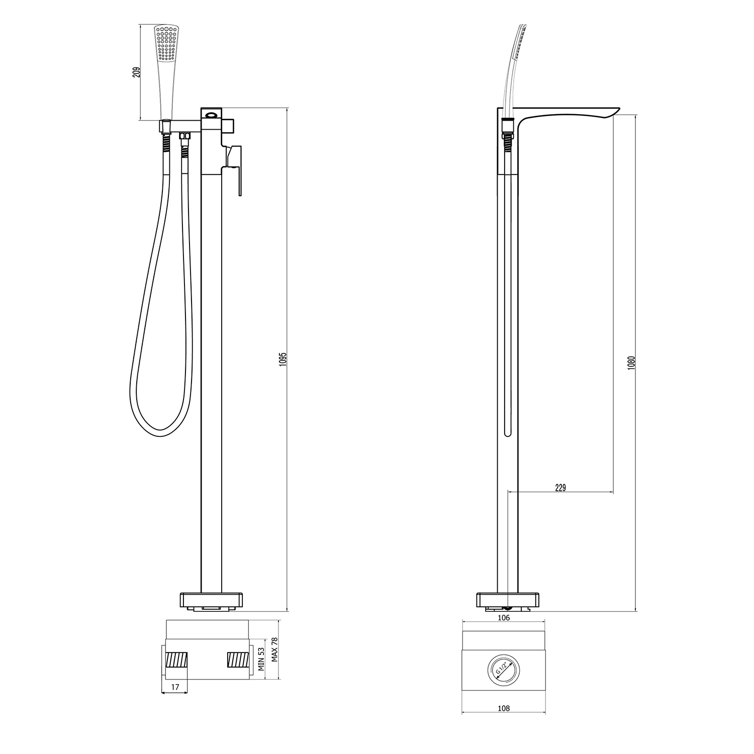 FORATA vanová baterie s připojením do podlahy, černá mat FT021/15