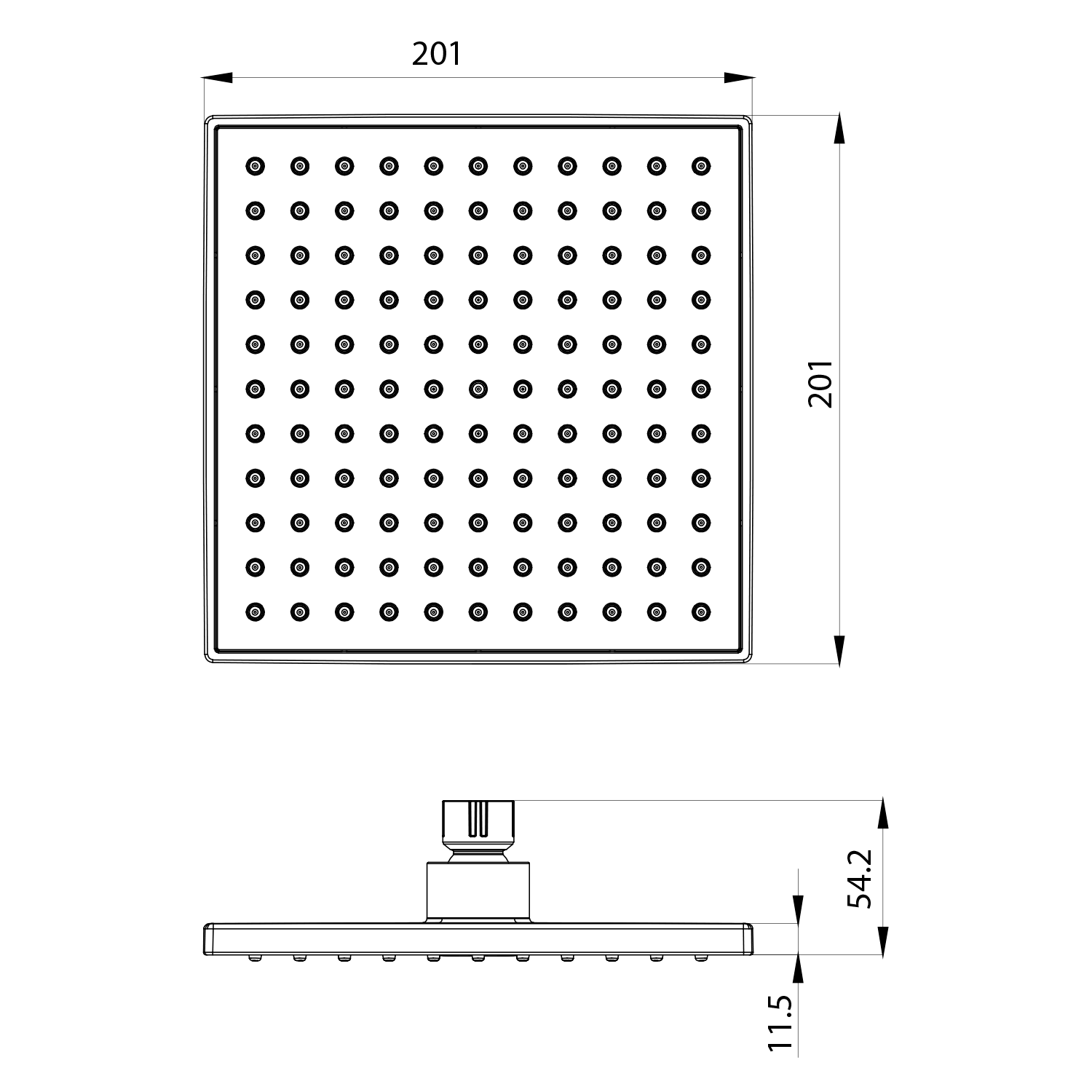 Sprchové stropní ramínko, hranaté, 200mm, černá mat 1205-07B