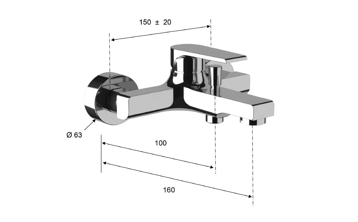 ACTION nástěnná vanová termostatická baterie, chrom MB106