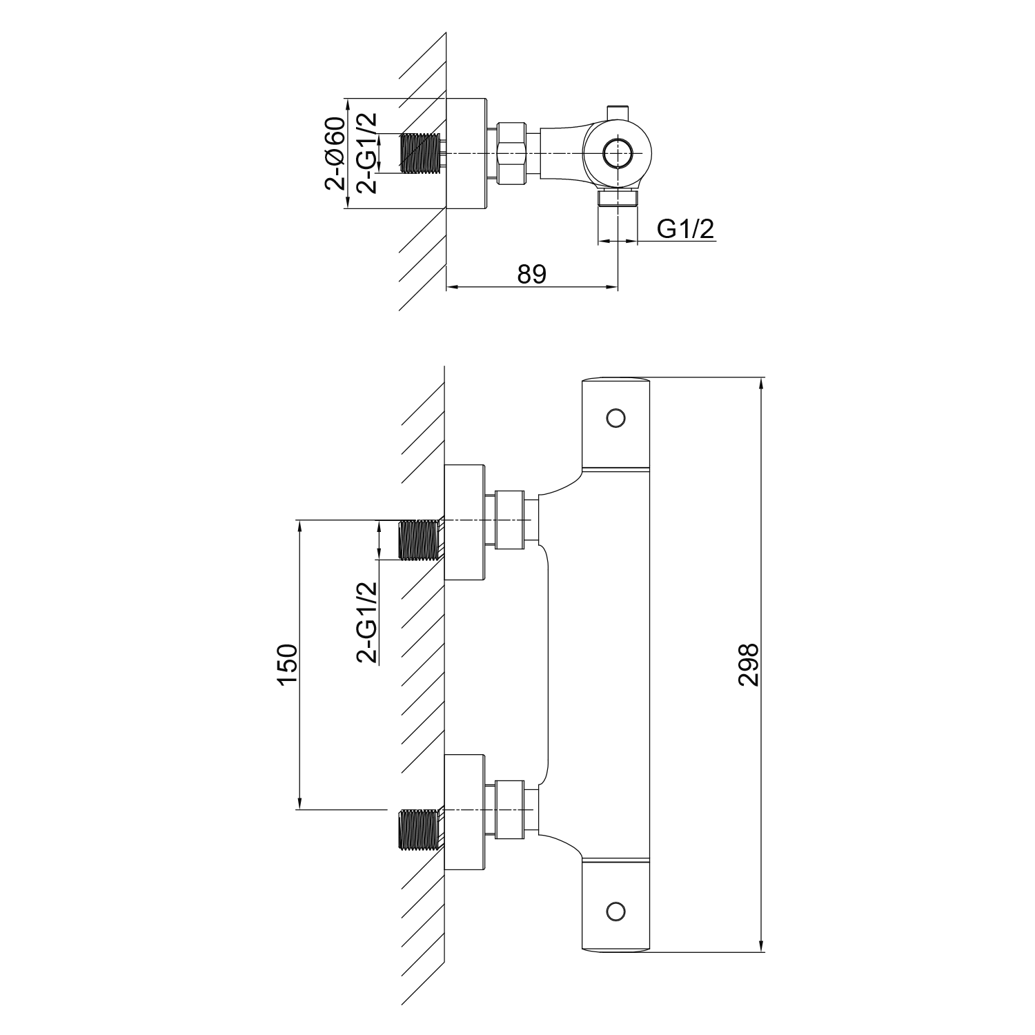 MIXONA nástěnná sprchová termostatická baterie, chrom MG411