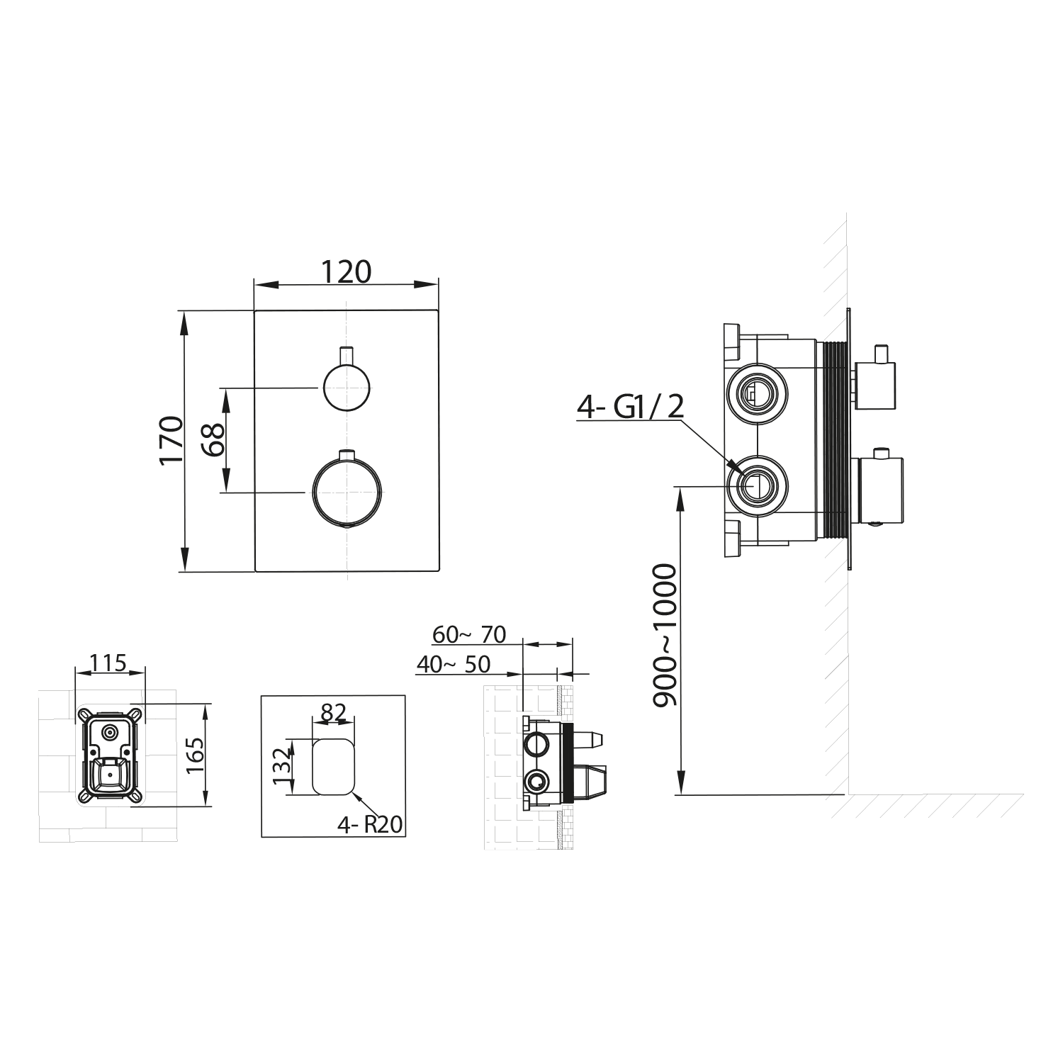 Vývod sprchy, hranatý, tenká krytka, chrom SG302