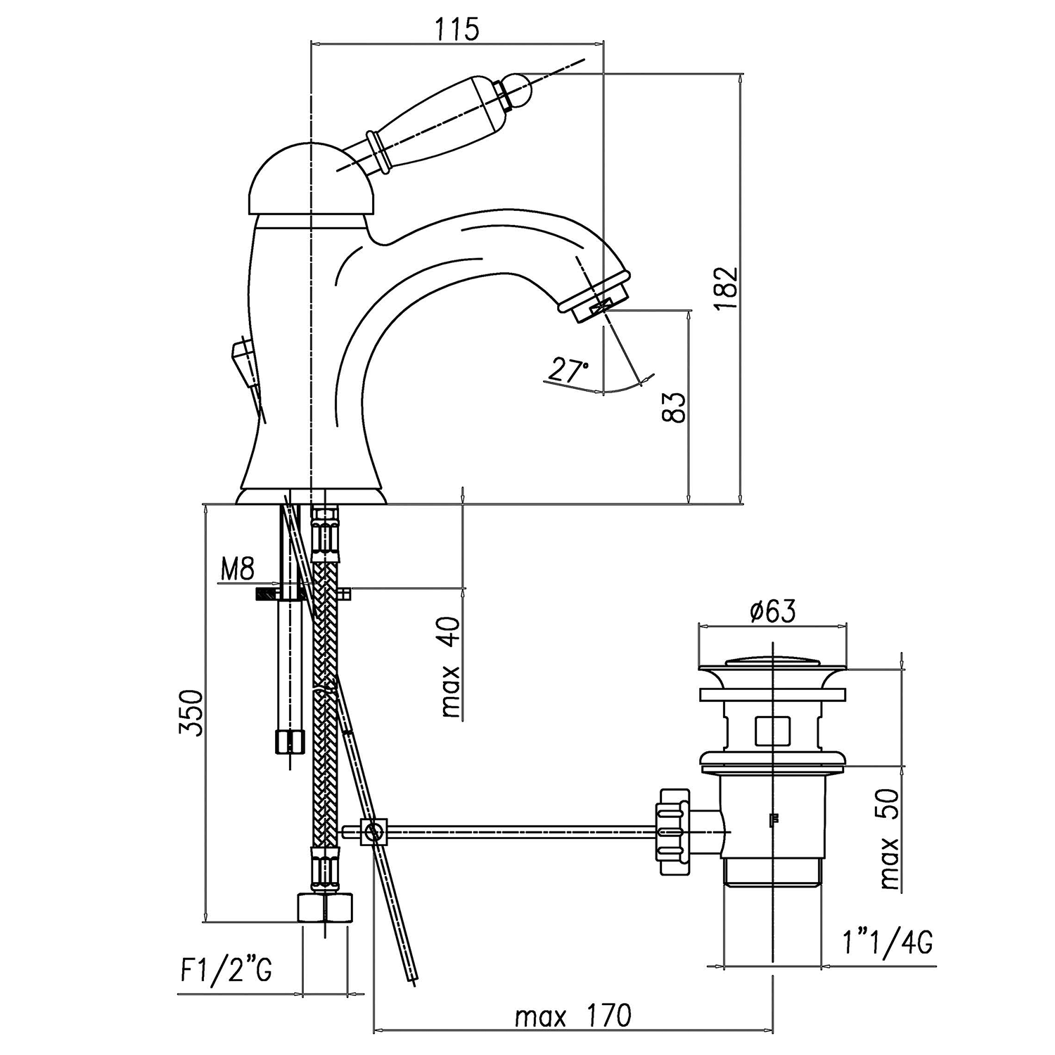 VIENNA stojánková umyvadlová baterie s výpustí, chrom VO002