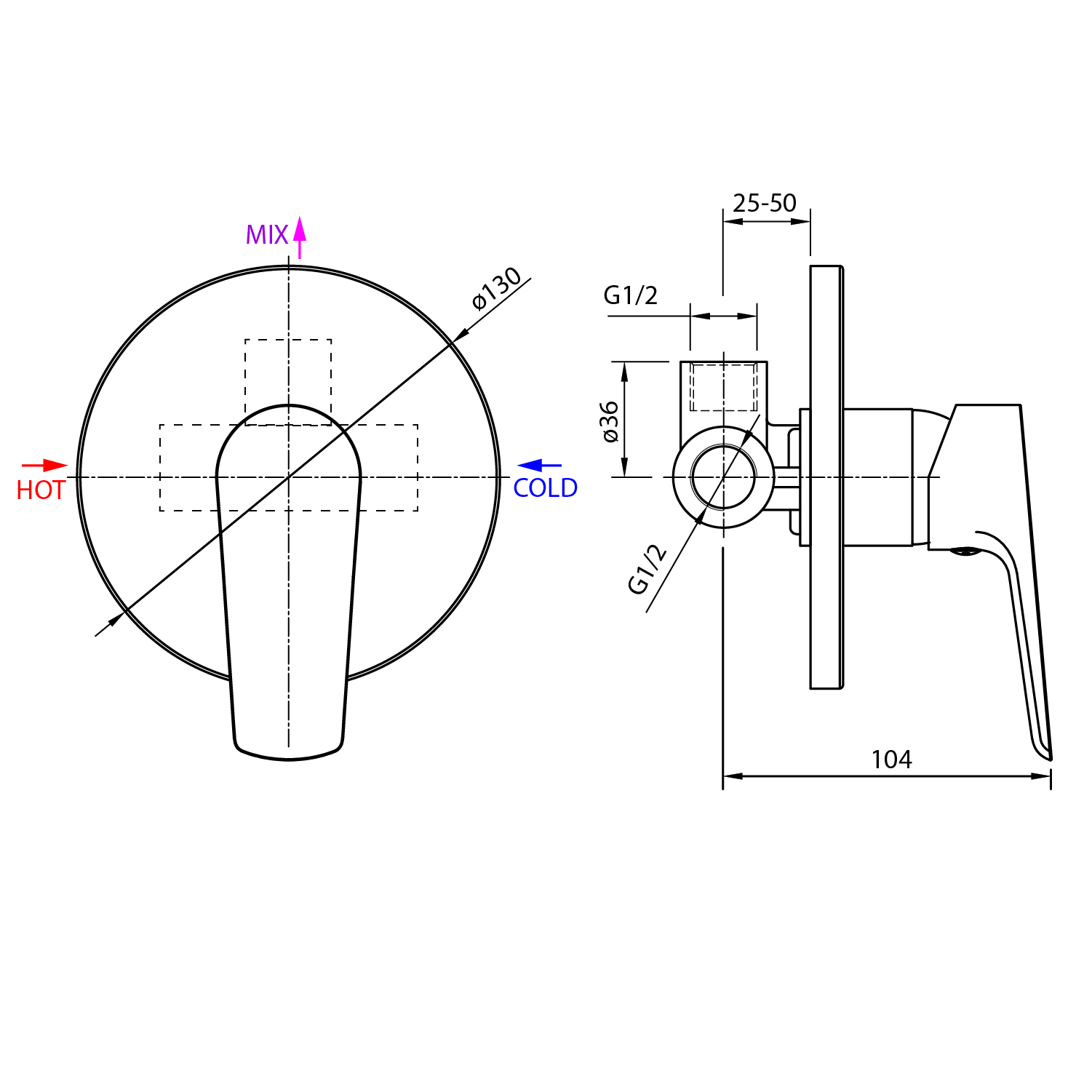 Vývod sprchy, kulatý, tenká krytka, černá mat SG202NE