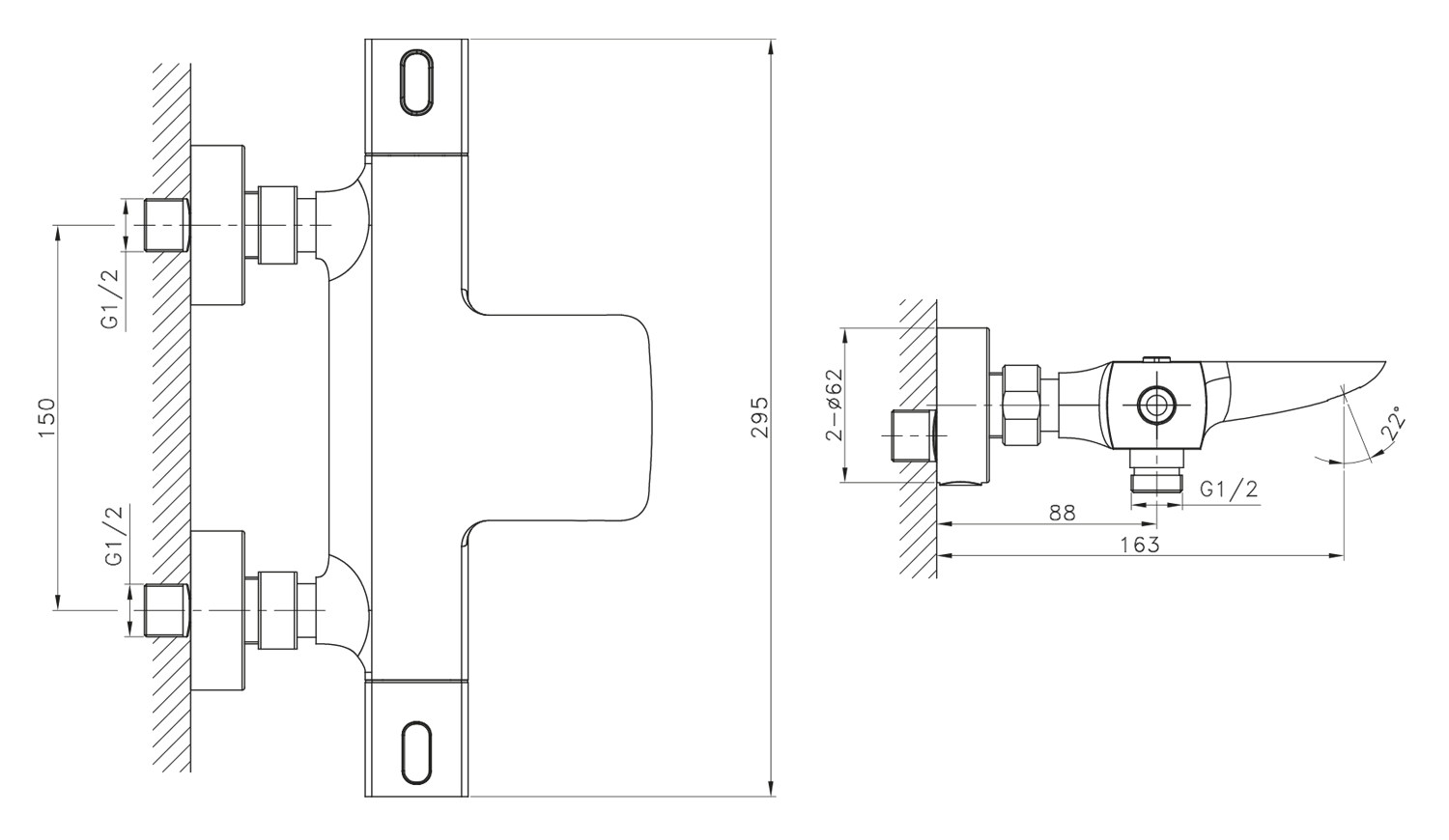 Držák sprchy hranatý, pevný, chrom 1205-14