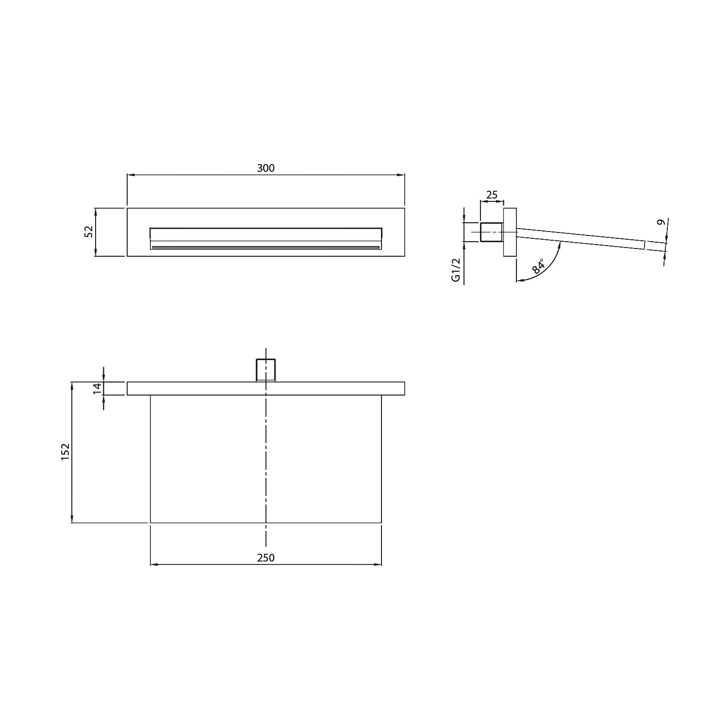 Nástěnná výtoková hubice otevřená, šířka 145mm, kaskáda, chrom 5108
