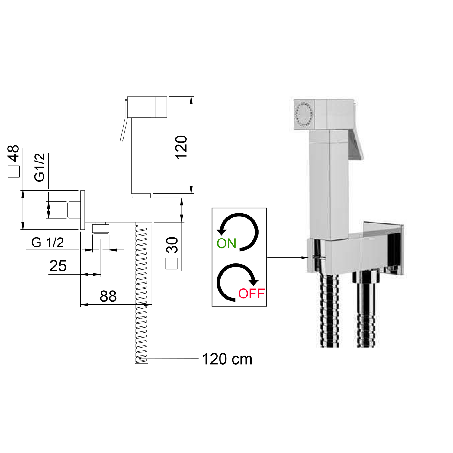 Nástěnný ventil s ruční bidetovou sprškou a bezpečnostní pojistkou,hranatý,chrom SG108